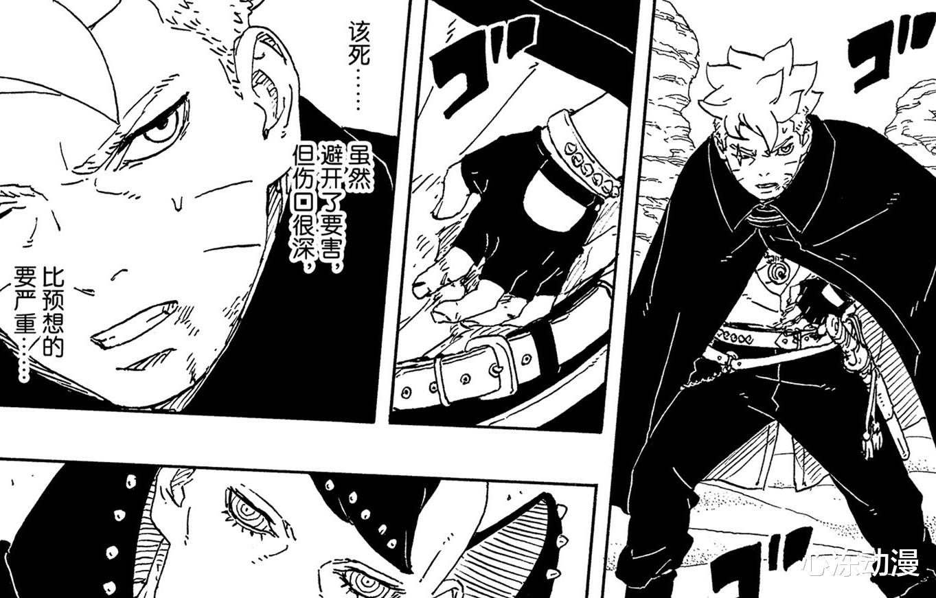 漩涡博人利用“飞雷神之术”的特点,快速出现在“十罗”身边,开始拼命反击。这次的招式有效果了,漩涡博人把“十罗”的一只脚斩断。表面上,漩涡博人占了上风,但“十罗”被彻底激怒了。