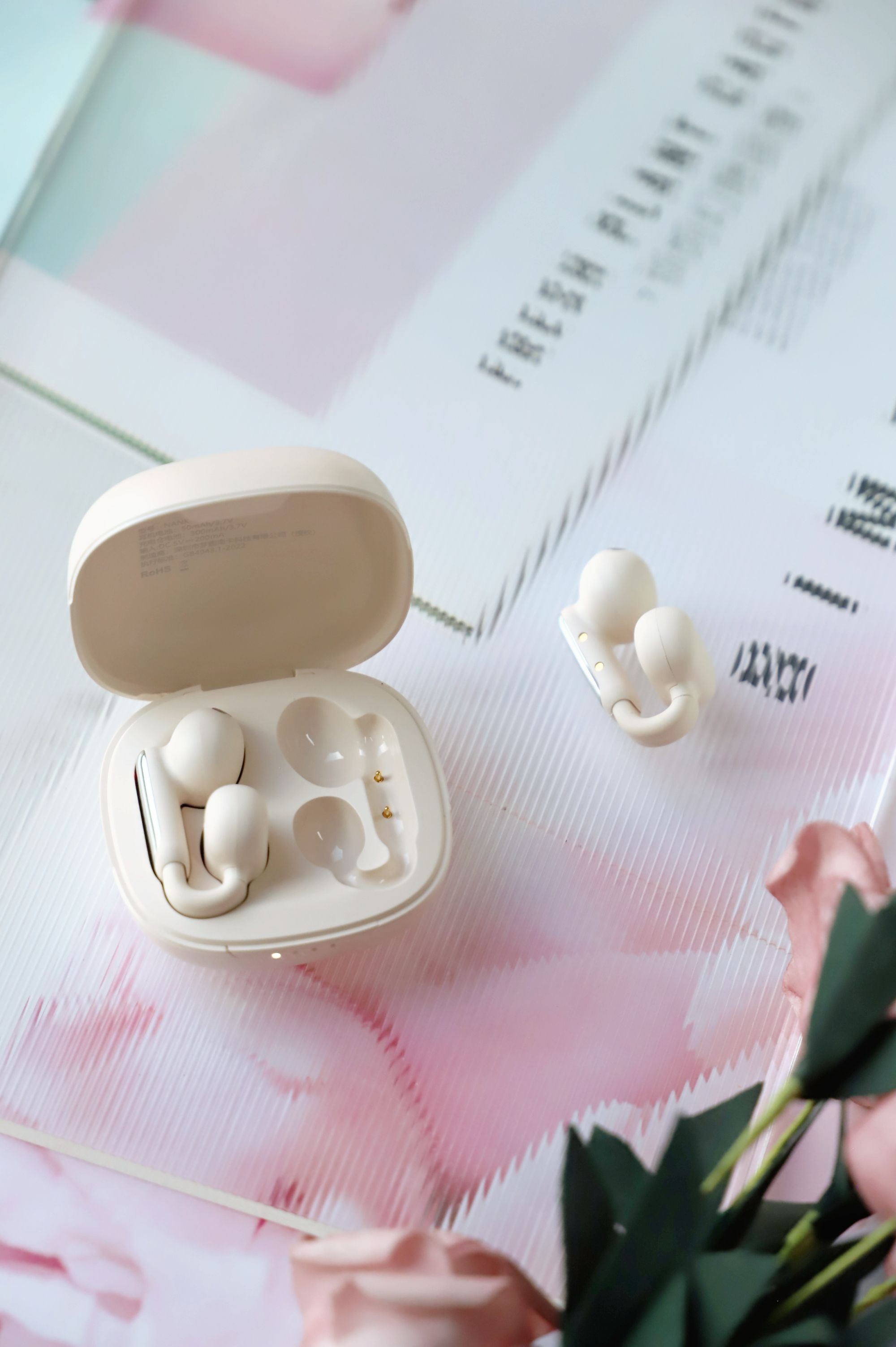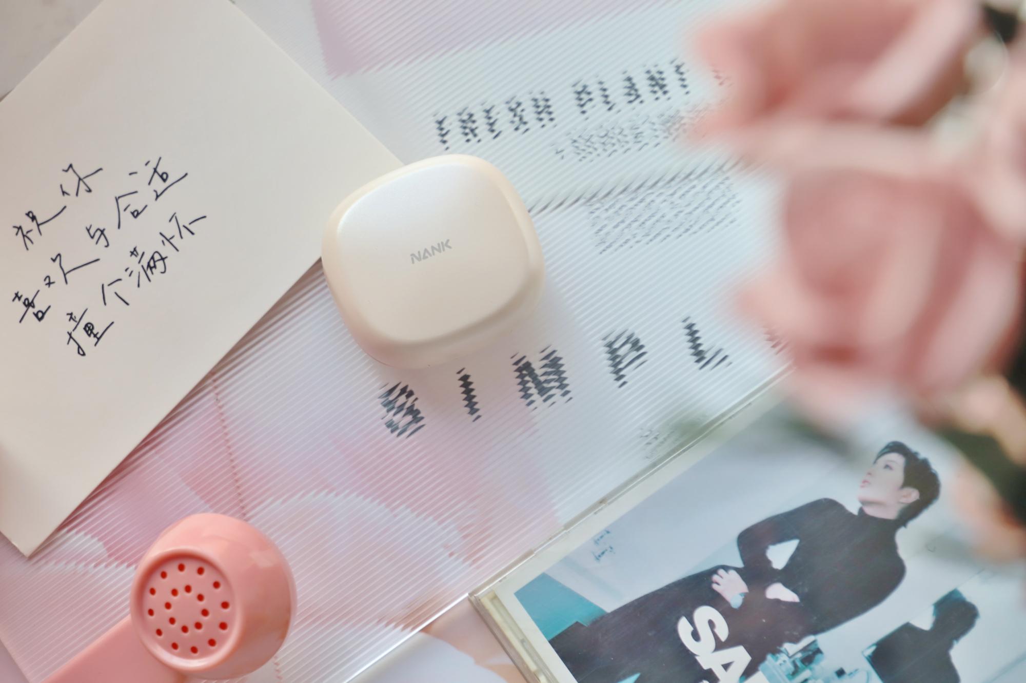 NANK南卡Clip Pro采用充电和收纳仓二合一的设计,整个盒子看起来粉粉嫩嫩,表面还带着淡淡的珠光,就像女生常用的粉饼盒。