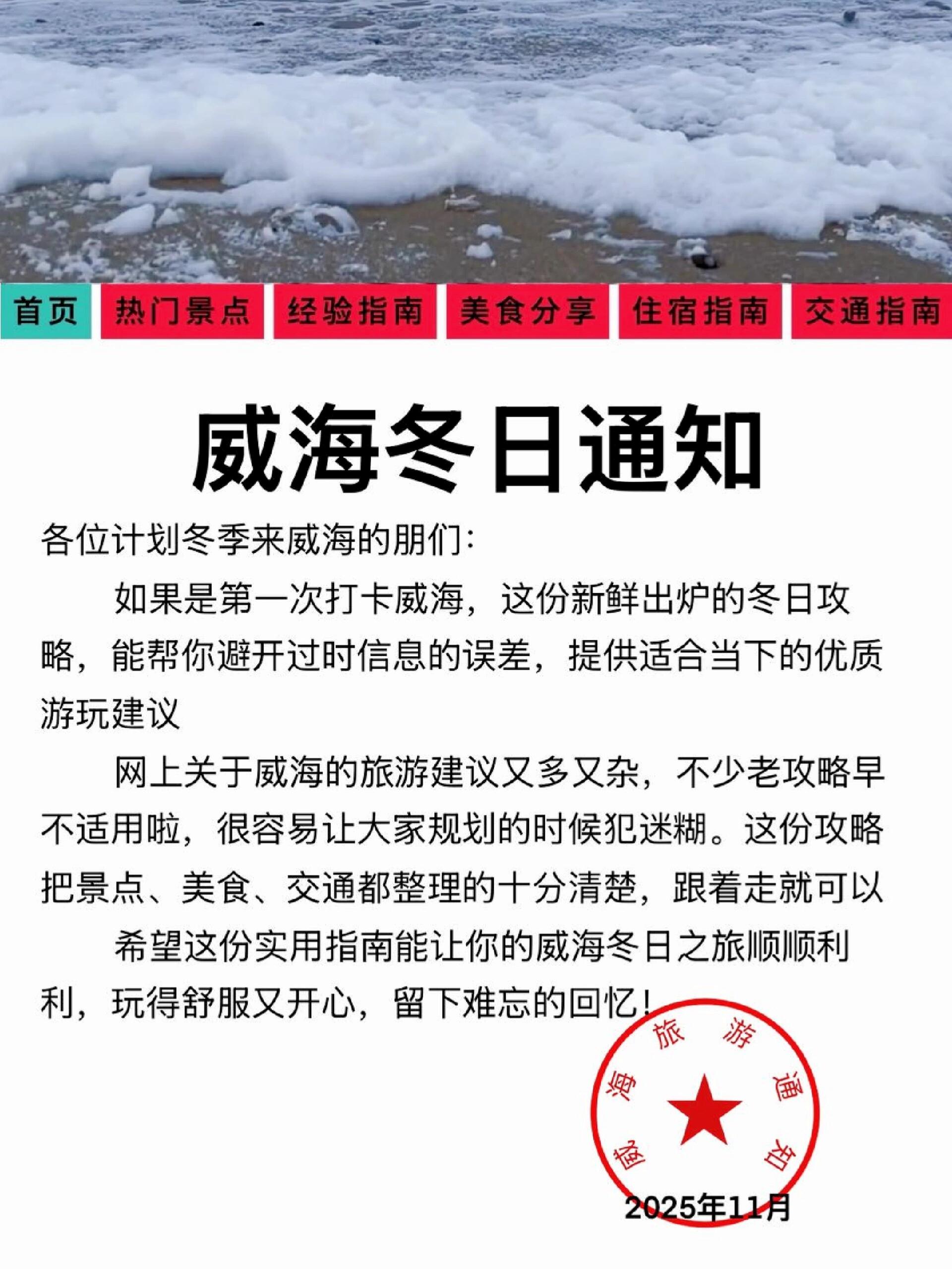 姐妹们!👯♀️冬天来威海玩的时候,查询攻略或者游玩信息📝的话记得看新发的,我这次就是去威海前翻了好多笔记,结果发现好多信息都过时了😭后来找本地朋友给我发了这份!✅