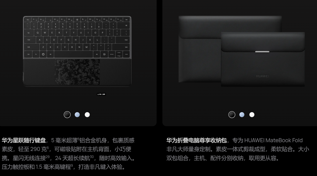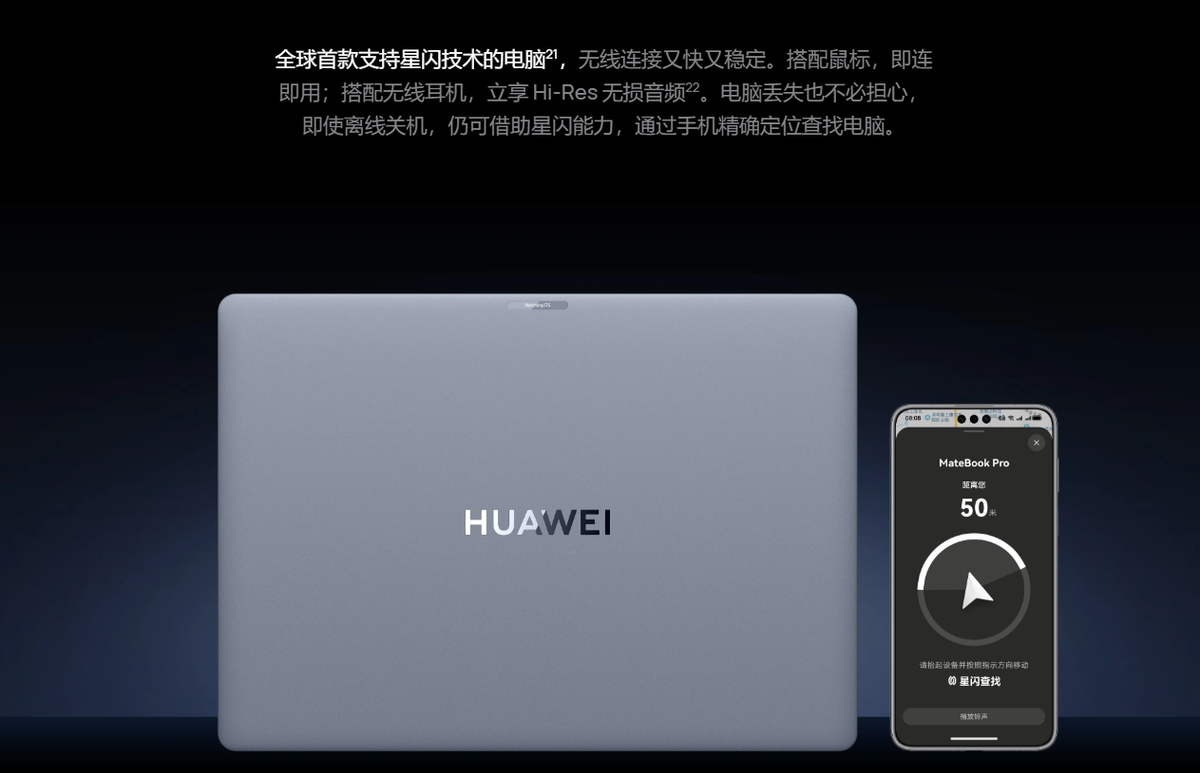 华为MateBook Pro搭载的全球首款星闪技术,让无线连接体验再升级。搭配星闪无线鼠标即连即用,操作延迟几乎无感;连接星闪无线耳机,还能享受Hi-Res无损音频,剪视频时听配乐更精准。更贴心的是,电脑离线关机时,手机借助星闪能精确定位,外出携带多了份安心。华为MateBook Fold 非凡大师的星跃随行键盘,通过星闪无线连接实现24天超长续航,磁吸贴附设计便携,5毫米超薄机身搭配1.5毫米高键程,长时间打字手感依旧舒适。