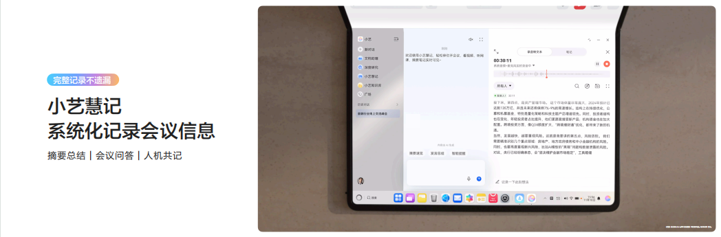 小艺在会议中的表现更让我惊喜。作为常跨城参会的博主,中途离场对接工作是常态,华为MateBook Fold 非凡大师的小艺慧记彻底解决了我的后顾之忧。上次行业峰会上,我用它全程记录论坛分享,中途临时离场时设置了“提及我的项目名称时提醒”,回来后不仅收到精准提示,还能通过实时转写补全错过的内容。会议结束后,小艺自动整理出带时间戳和关键数据的纪要,同步了截图与录音,直接转发团队即可协作,省去手动整理的繁琐。