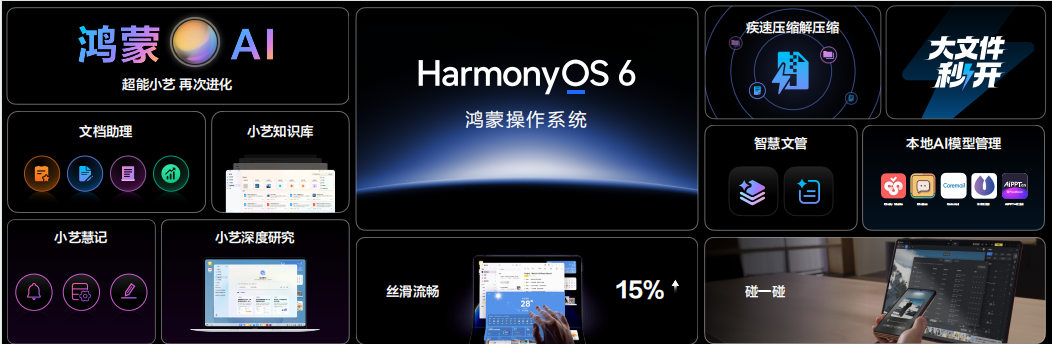 11月19日,华为举办华为鸿蒙办公新品技术沟通会。会上,华为正式对外展示HarmonyOS 6在鸿蒙电脑端的创新功能及生态进展,演示了华为MateBook Pro及华为MateBook Fold 非凡大师两款产品在HarmonyOS 6的赋能下,“小艺深度研究"“碰一碰”互联等功能带来的智慧办公体验革新。