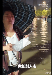 01翻手机时看到这样一个视频,一下子就被视频中的女孩感动了。视频里那惊心动魄的一幕:雨像泼水一般倒下来,城市在浑浊的水流