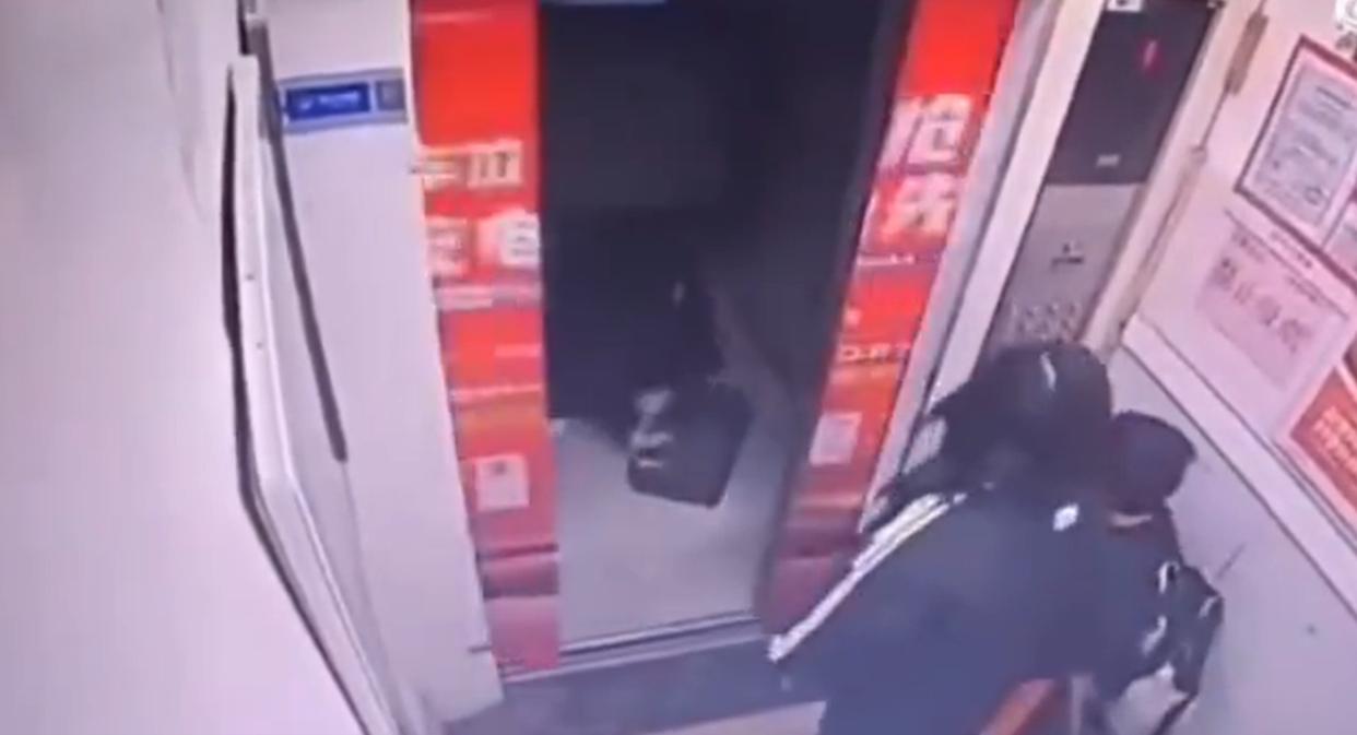 该视频发布时间为12月24日,这是一段电梯的监控视频,时间为早高峰时期。