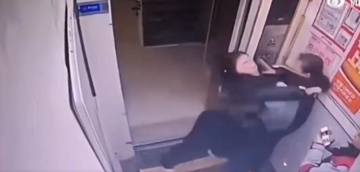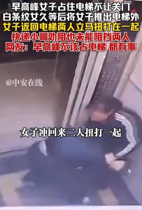 快递员离开后,两名女子在电梯里厮打了很久,相互扯着对方的头发,谁也不肯松开。