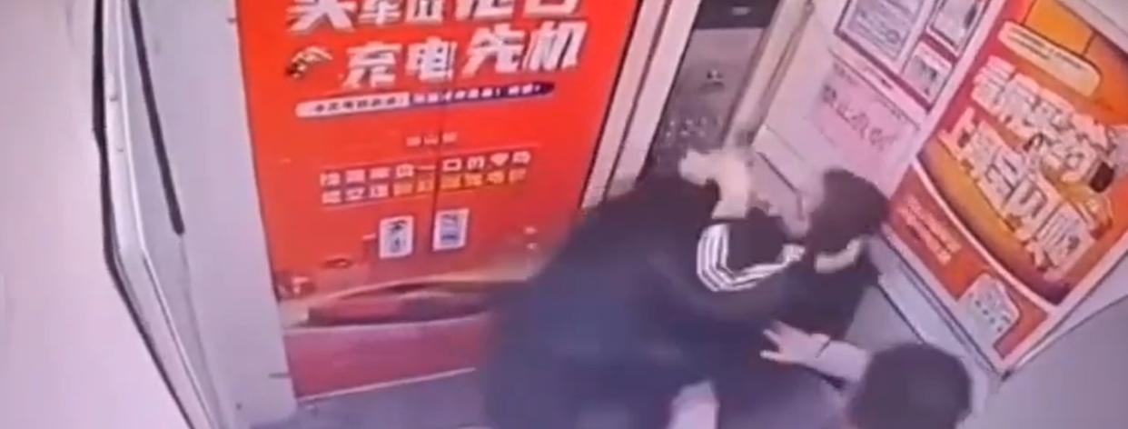 这时电梯已经到了1楼,然而就在这时,黑衣女子借助快递员在旁边的优势,趁机一拳向就向这位母亲的脸挥去。