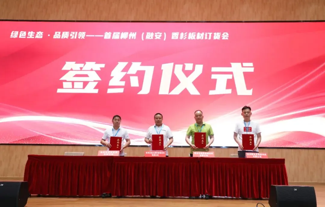 6月29日,在首届柳州(融安)香杉板材订货会上拍摄的签约仪式现场。