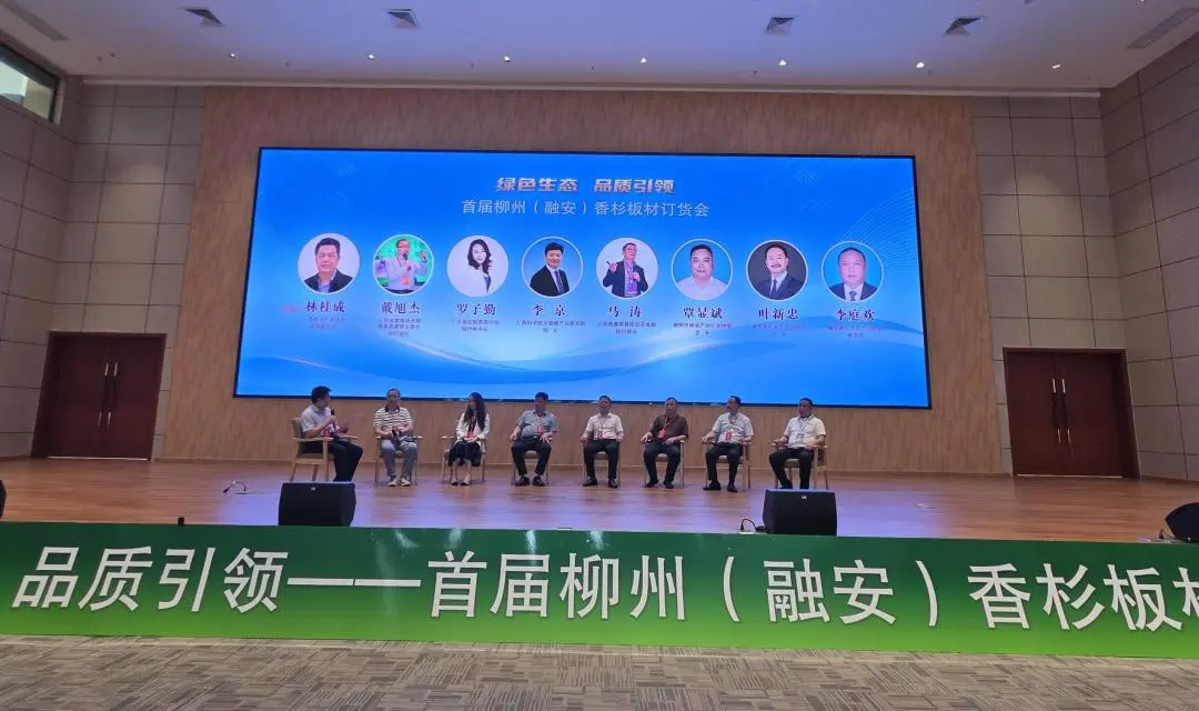 6月29日,在首届柳州(融安)香杉板材订货会现场,行业专家在香杉产业发展论坛环节展开讨论。