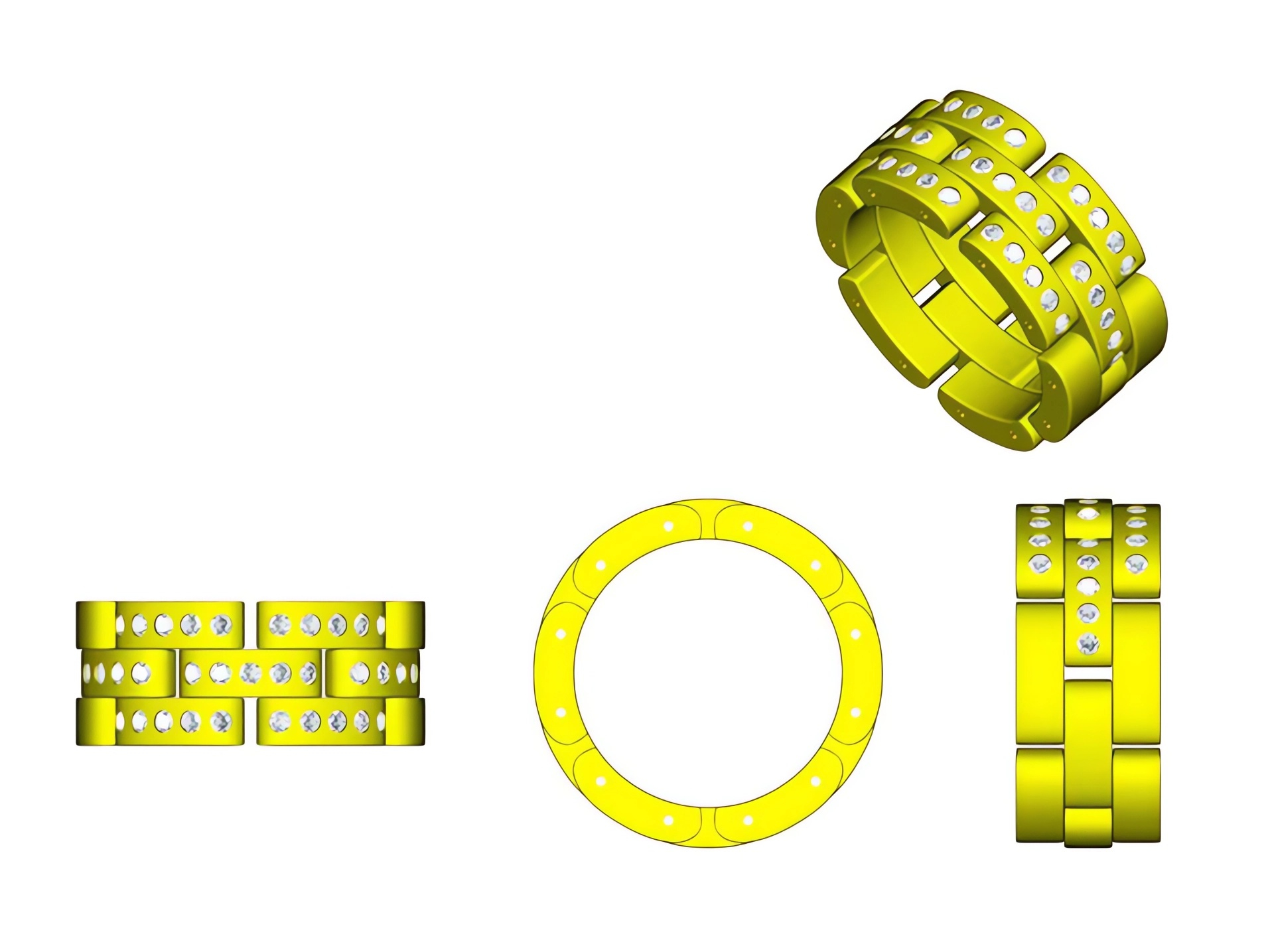 Cartier卡地亚Maillon Panthère系列18K白金正面镶钻石三排款坦克戒指CAD图