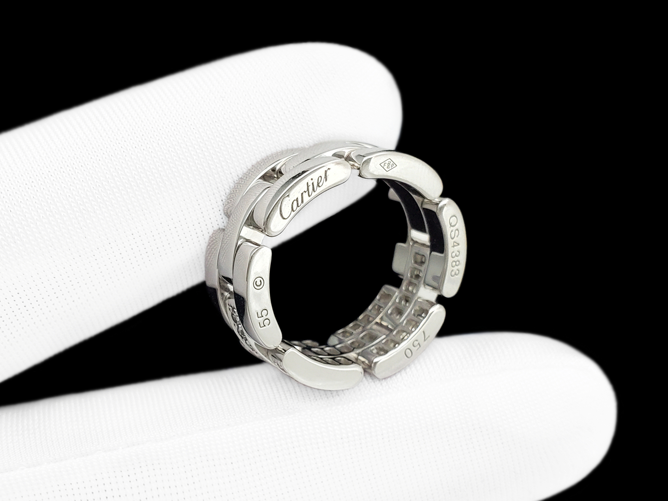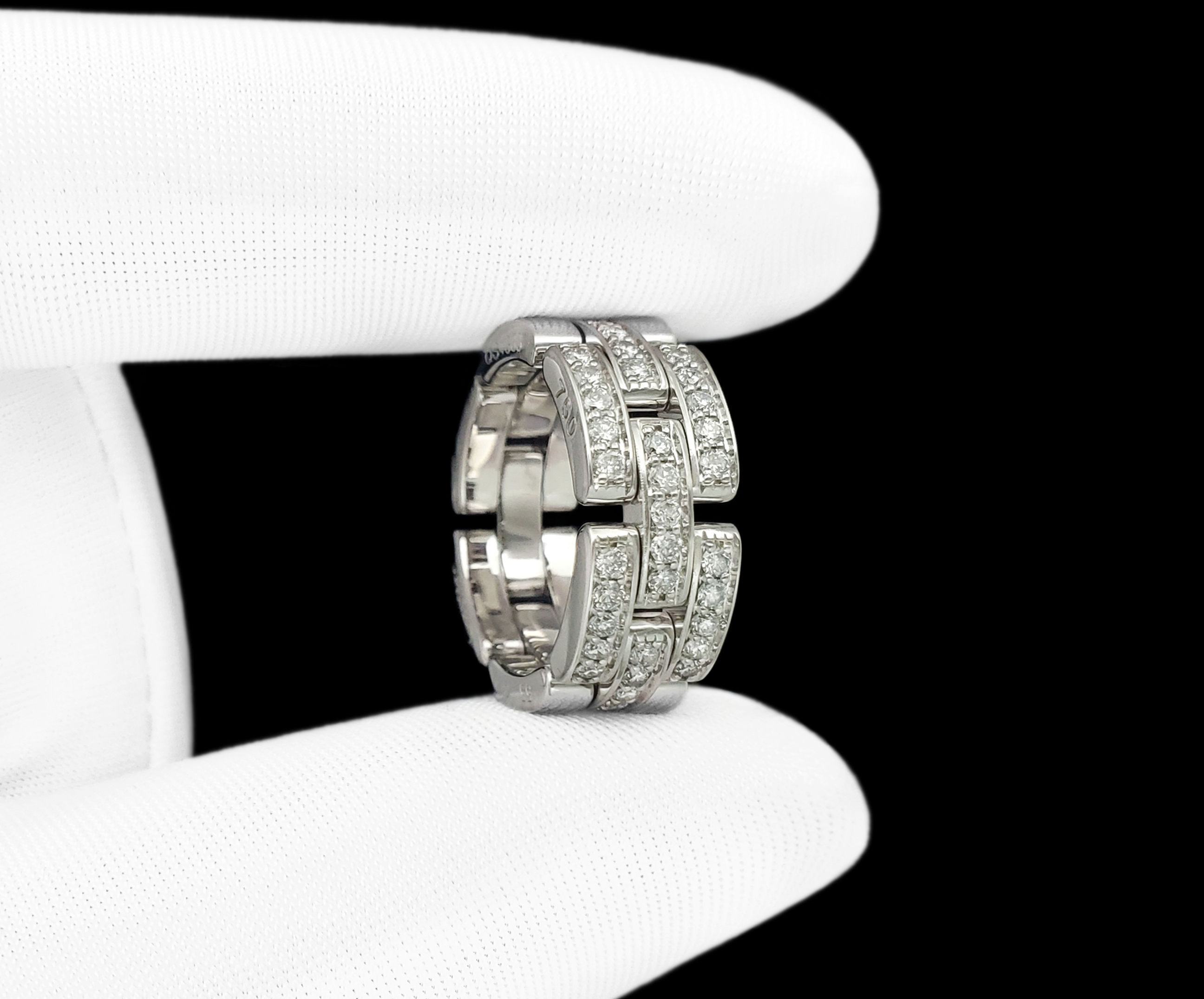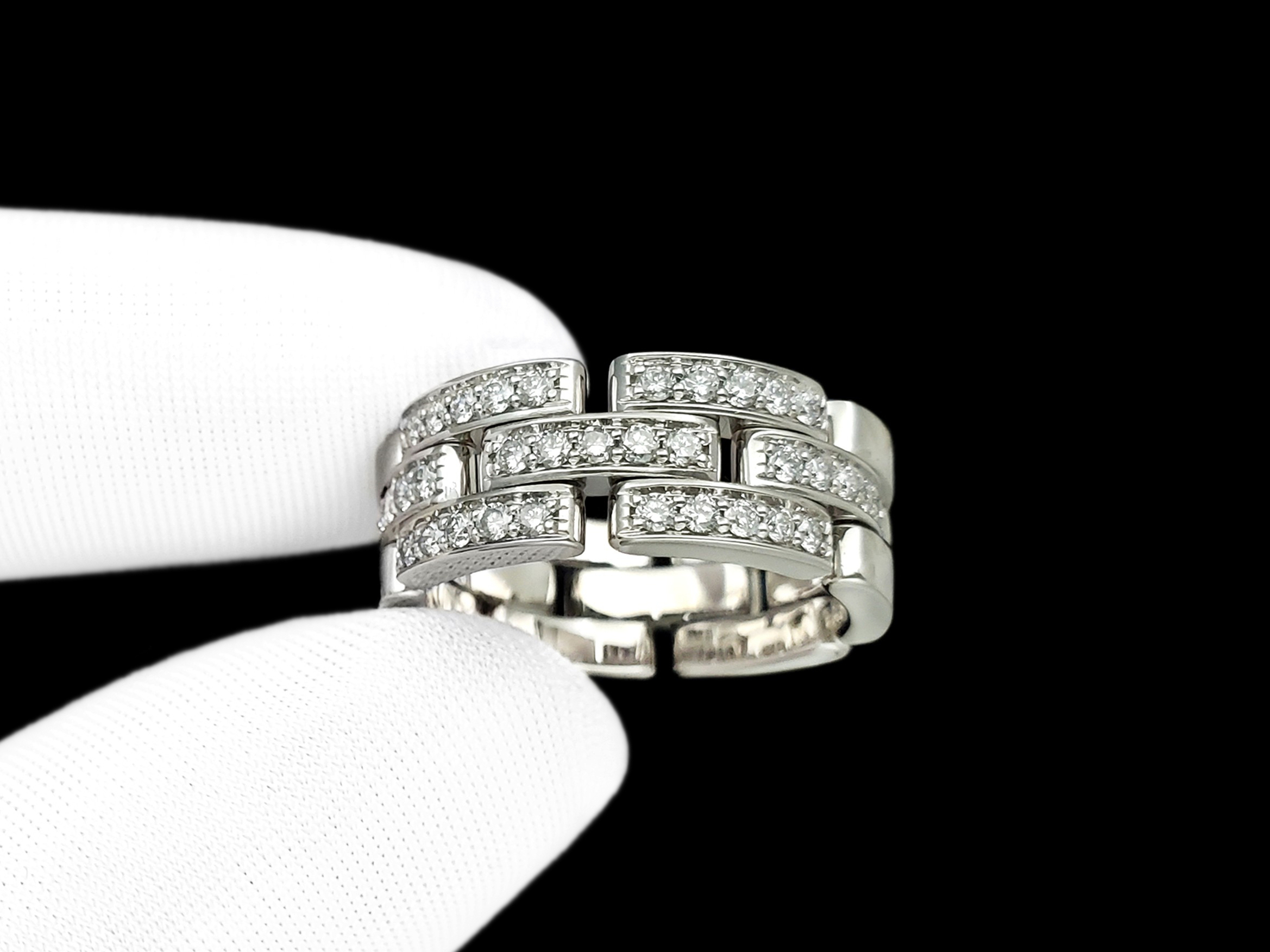 Cartier卡地亚Maillon Panthère系列18K白金正面镶钻石三排款坦克戒指