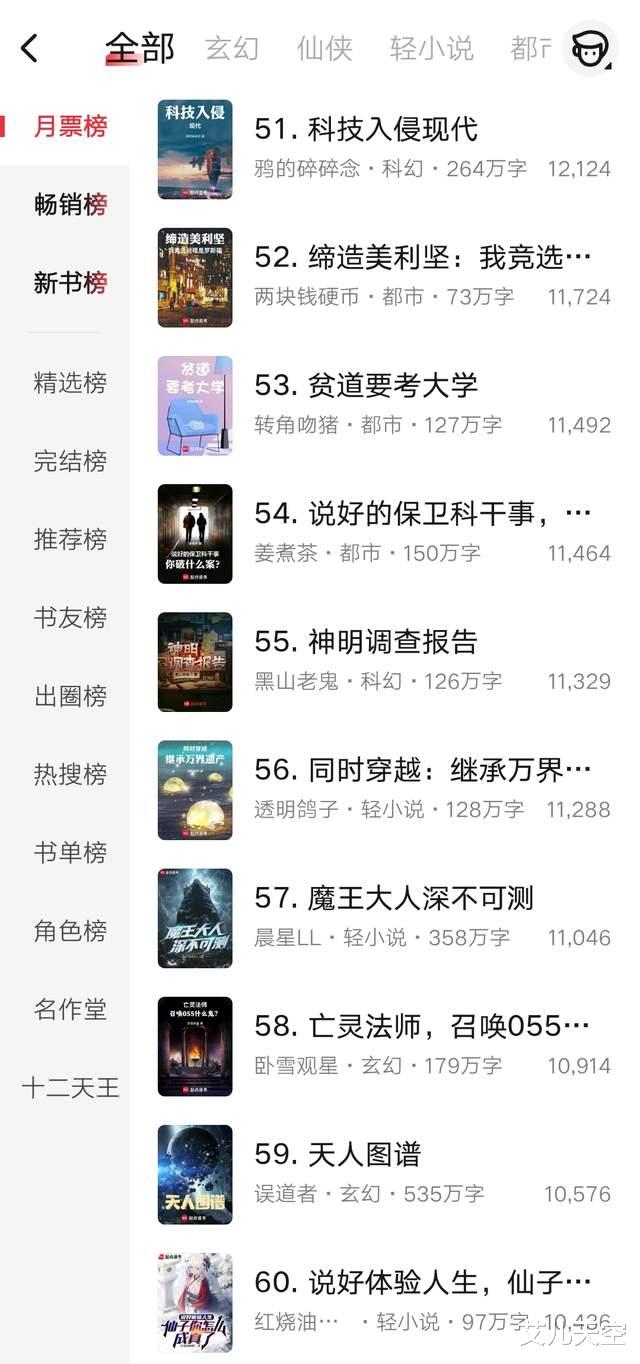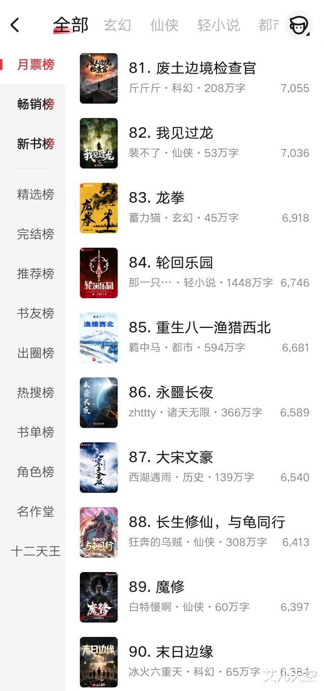 渔雪的《多我一个后富怎么了》拿到了去年的都市天王名额,这个月前二十的开局也要比以往月份高了不少。