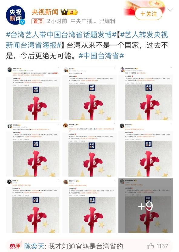 显而易见,这些台湾艺人出于内心自愿所做出的转发决策,台当局越是显得焦虑不安,便越显其内心的不安。由此亦可见,尽管民进党当局近年来不遗余力地构建信息茧房,台湾省内仍有一大批人坚守初心,他们不仅期待台湾早日回到祖国的怀抱,更是抱有热切的期盼。