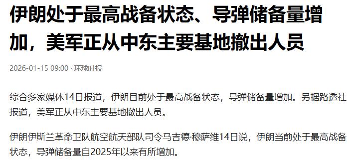 更关键的是,伊朗现在亮肌肉,不是瞎咋呼,是摸准了当前的局势。美伊关系已经紧张到了临界点,美国不仅要求公民立即离开伊朗,还把军事打击方案摆上了桌面,甚至调了航母打击群去中东。这种时候,伊朗拿出充足的导弹库存,就是告诉美国:别想着随便动手,真打起来我能让你吃不了兜着走。而且这也是给周边国家看的,证明自己有能力自保,不是谁想捏就能捏的软柿子,为自己争取到了更多谈判和周旋的筹码。