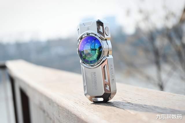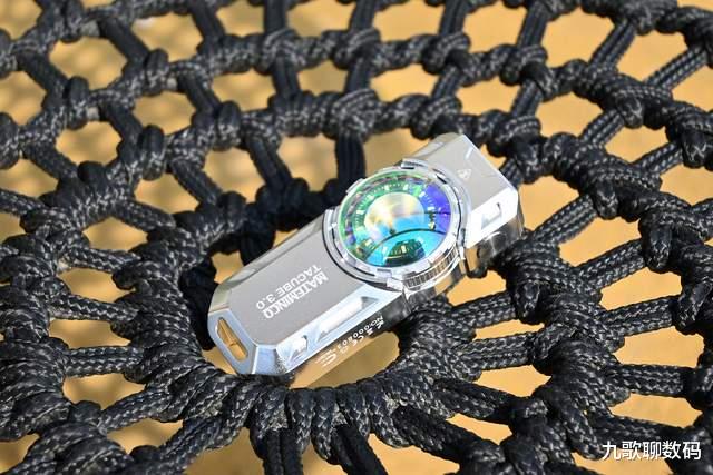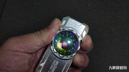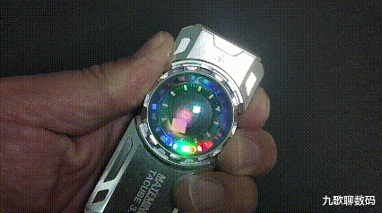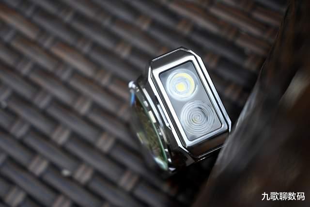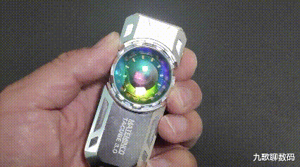整支手电的设计感很强,两侧的CNC切面和凹槽设计既刚毅有型又利于散热。正中一颗炯炯有神的“卡姿兰大眼睛”给人以流光溢彩的视觉呈现。这一大块儿由采用了钢化镀膜工艺的凸透镜组成的RGB附灯即便不点亮,在光线照射下也散发着宝石般的光彩。而且这颗“大眼睛”本身还是可以指尖旋转拨动。真是既好看又好玩儿。