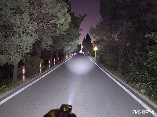 最后让我们来看下 TACUBE 3.0的实际表现吧,先来看下白光下的夜射效果,其共有高、低两个档位可调。单灯珠下远光高亮为650流明,泛光高亮1000流明,远泛齐开的情况下可达1550流明的最高输出(光强为11000坎德拉)和209米的射程。