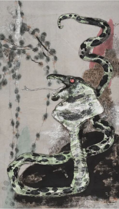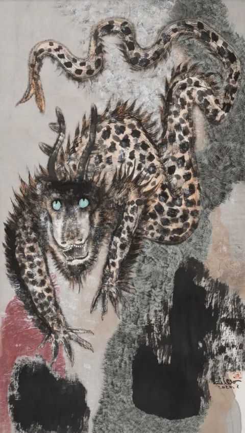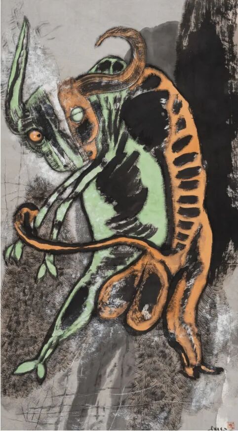 如果说黑白水墨是关玉良艺术语言的“底色”,那么重彩创作则是他“抓住了色彩”后,实现“梦想即和无尽的现实相拥”的重要突破。在传统中国画体系中,重彩虽历史悠久,却长期受限于“随类赋彩”的准则,色彩多作为水墨的辅助,用于强化物象的真实性。关玉良却打破这一束缚,将色彩从“辅助”地位提升至“主角”,以“奇异和精妙的色彩”构建出极具视觉冲击力的画面,让色彩成为传递情感、连接梦想与现实的核心媒介。