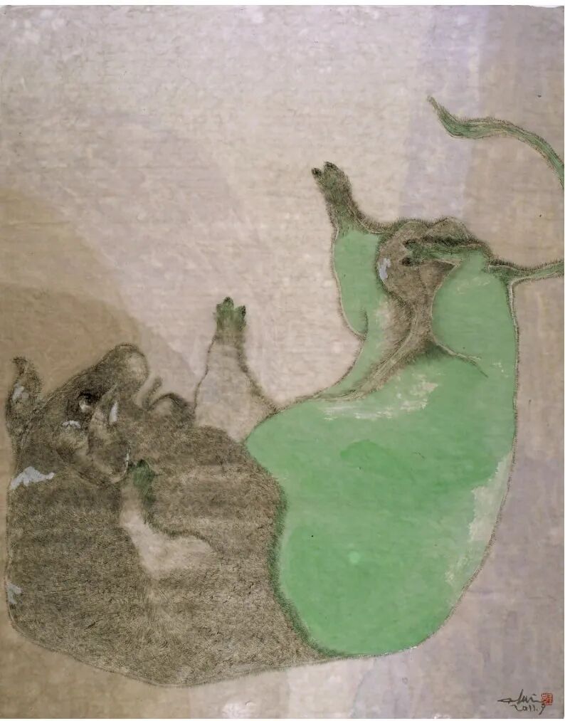 关玉良的“人性守望”,还体现在对“文化传承与创新”的担当上。作为当代艺术家,他深知自己肩负着传承中国传统文化、推动中国艺术走向世界的使命。在他的作品中,我们能清晰看到传统艺术的基因——水墨的笔墨韵律、重彩的色彩理念、民间艺术的质朴风格,这些都是他对中国传统文化的致敬;但他又不满足于对传统的简单继承,而是通过创新的艺术语言,让传统焕发新的生机。