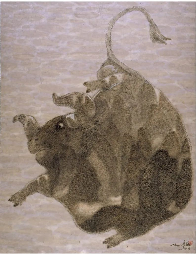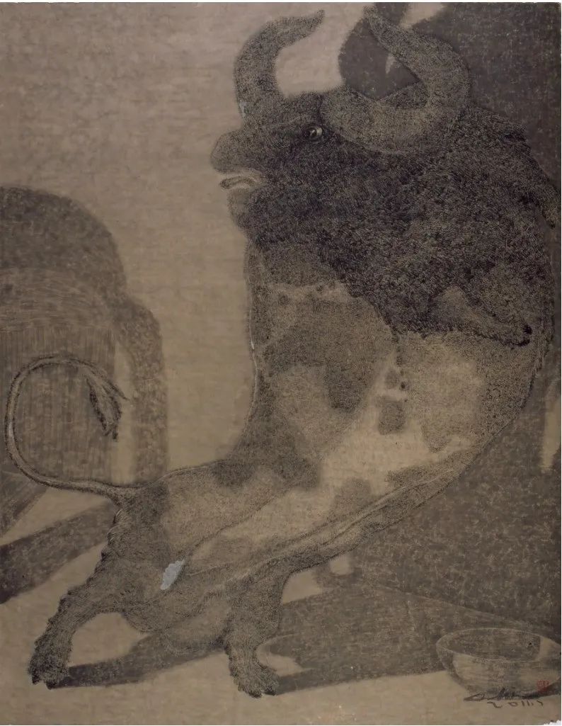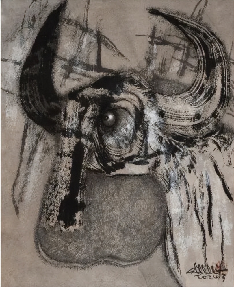 在黑白水墨的质感营造上,关玉良同样展现出卓越的创造性。克里斯蒂安·努伯根提及的“粗犷的质感”,是他突破传统水墨细腻笔触的重要标志。他不局限于毛笔的常规用法,时而以枯笔皴擦,营造出斑驳的肌理;时而以泼墨晕染,形成自然的墨韵;甚至融入西方绘画的笔触技巧,让水墨在宣纸上呈现出前所未有的层次感。这种粗犷的质感,并非刻意的“破坏”,而是对传统水墨语言的丰富与拓展——它让水墨不再局限于“逸笔草草”的文人画气质,而是拥有了直面现实、叩击灵魂的力量。在《人性系列》水墨作品中,他以粗犷的墨线勾勒人物轮廓,以斑驳的墨色表现人物的内心挣扎,黑白交织间,既传递出对人性困境的思考,又展现出对生命韧性的赞颂,让水墨语言成为连接个体情感与普遍人性的桥梁。