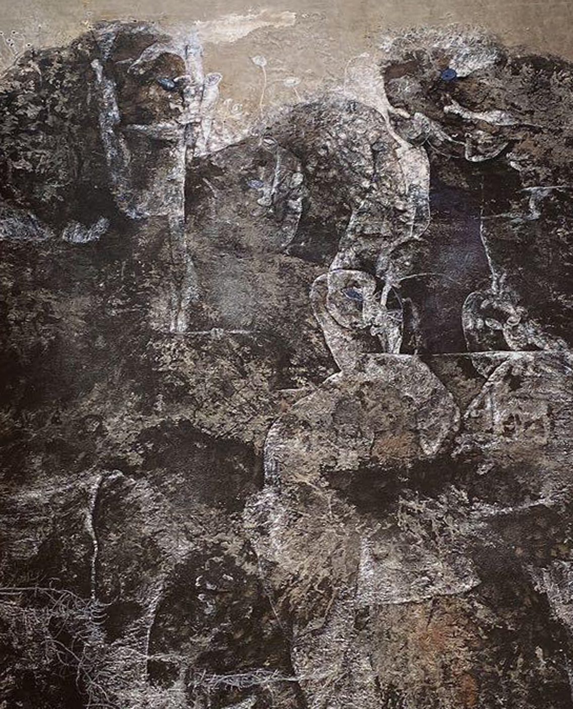 关玉良的“人性守望”,首先体现在对“生命本质”的关注上。他的作品从不回避生命中的苦难与挣扎,却始终以积极的姿态传递希望与力量——在黑白水墨中,他以黑暗中的微光象征生命的希望;在重彩创作中,他以明亮的色彩点亮现实的灰暗;在陶艺雕塑中,他以饱满的造型展现生命的蓬勃。这种对生命本质的深刻洞察,源于他对生活的热爱与对人性的信仰。他生于东北的广袤大地,满族文化的质朴与厚重,让他从小便对生命有着天然的敬畏;多年的艺术实践,让他见证了不同个体的命运起伏,也让他对人性的复杂与美好有了更深刻的理解。这种生活体验与情感积累,转化为他艺术创作的灵感源泉,让他的作品始终贴近人性、贴近生命,拥有打动人心的真实力量。
