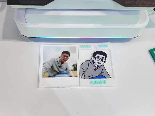 Tim 只用了几分钟,通过 SPARKX i7 完成将自己的照片打印成卡通风格的多色版画的操作。站在他身旁的,是创想三维联合创始人唐京科,他介绍到,这幅 3D 打印作品并非预制模型,而是直接基于 Tim 的照片,通过创想三维的 AI 建模平台生成的 3D 模型。