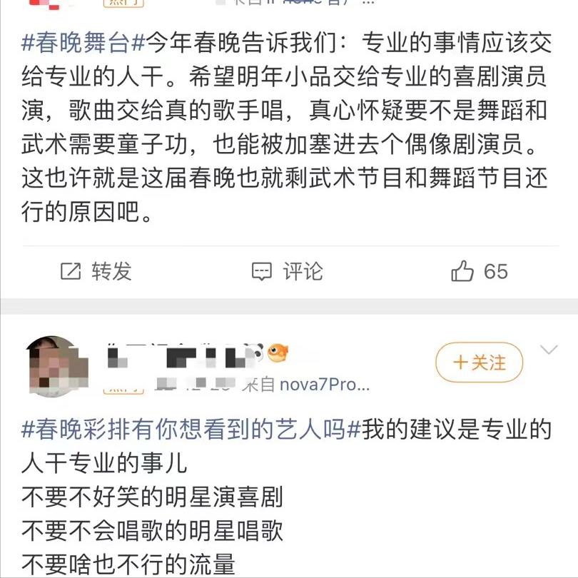 不少观众纷纷发表意见,称今年春晚还是跟往年一样令人失望。