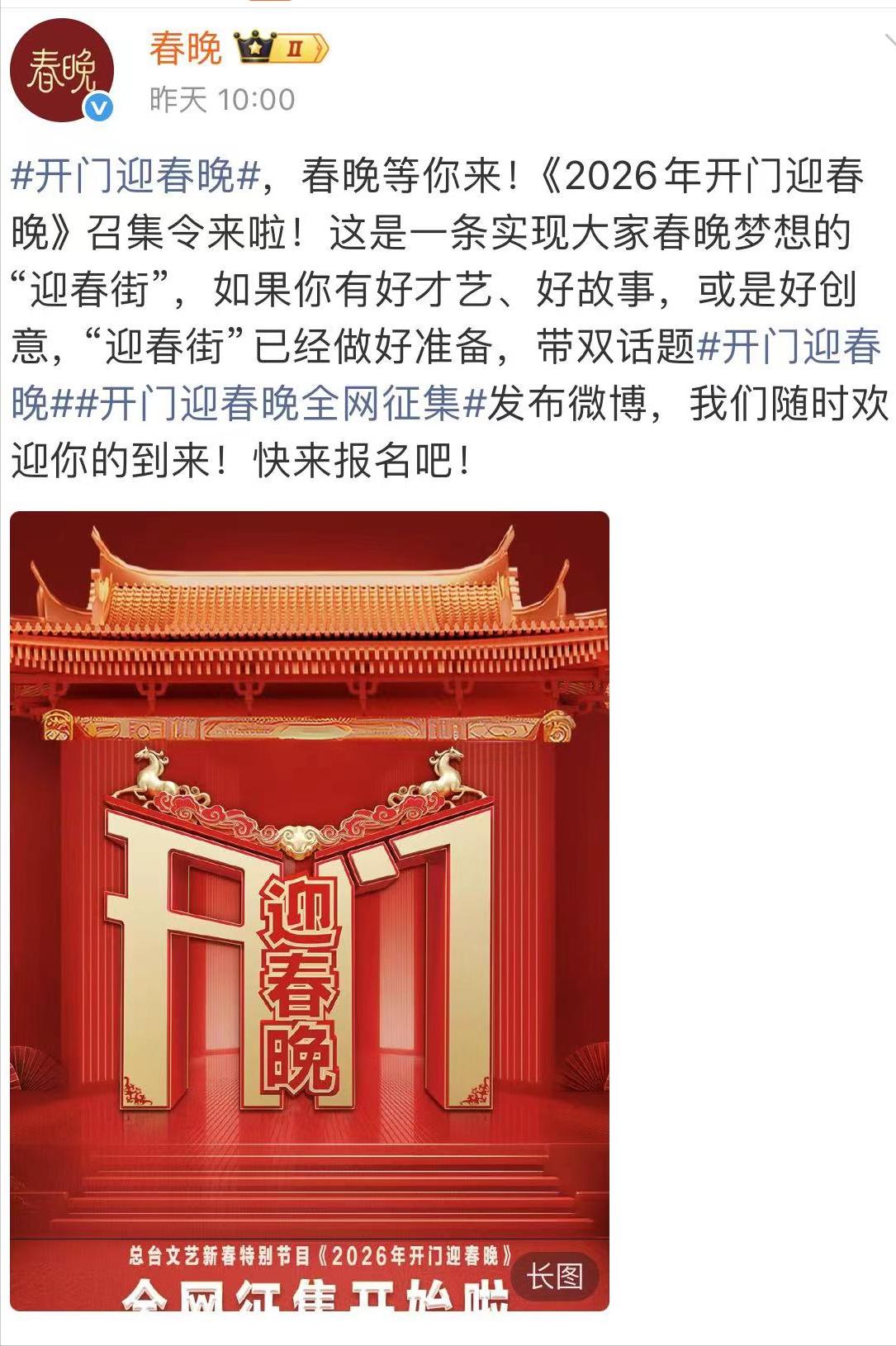 其实在2025年年底,央视春晚就发布了征集令,向广大网友征求意见。