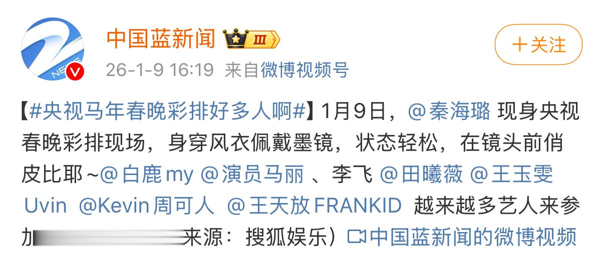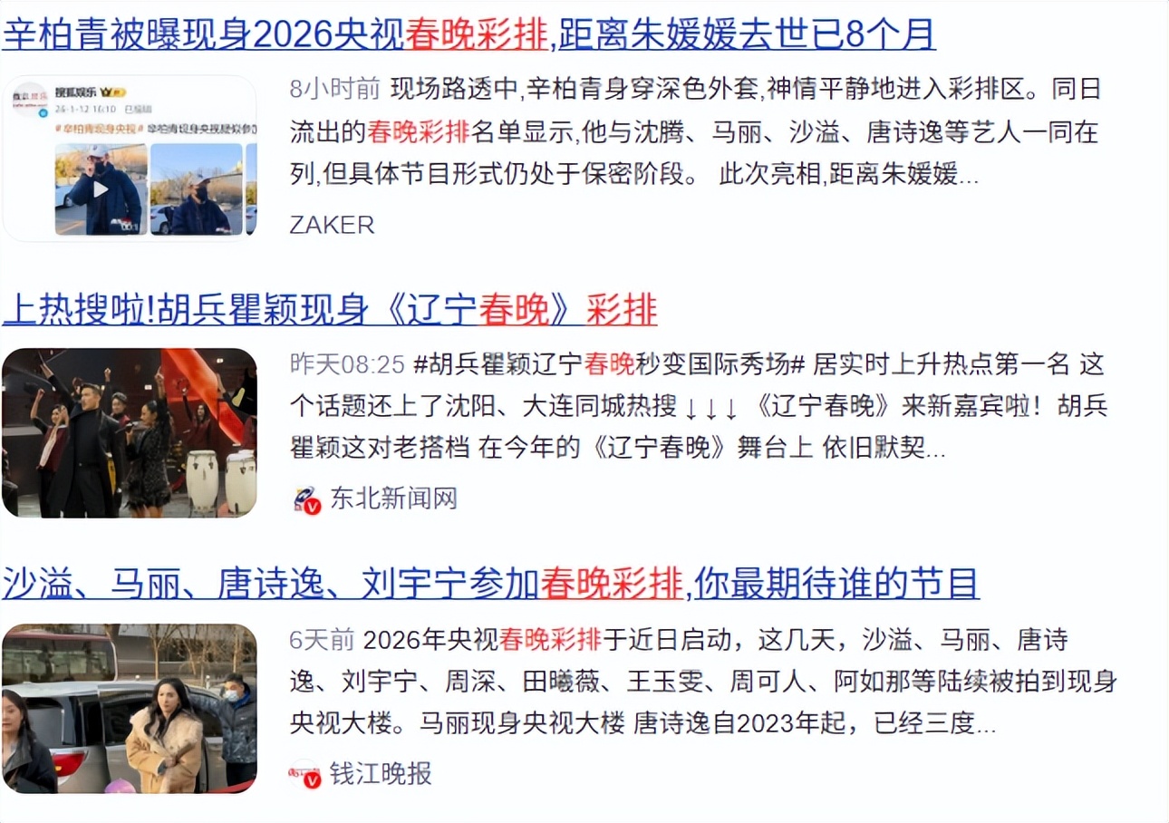 目前春晚还处于初期彩排阶段,最终的登台名单和形式都有可能调整。