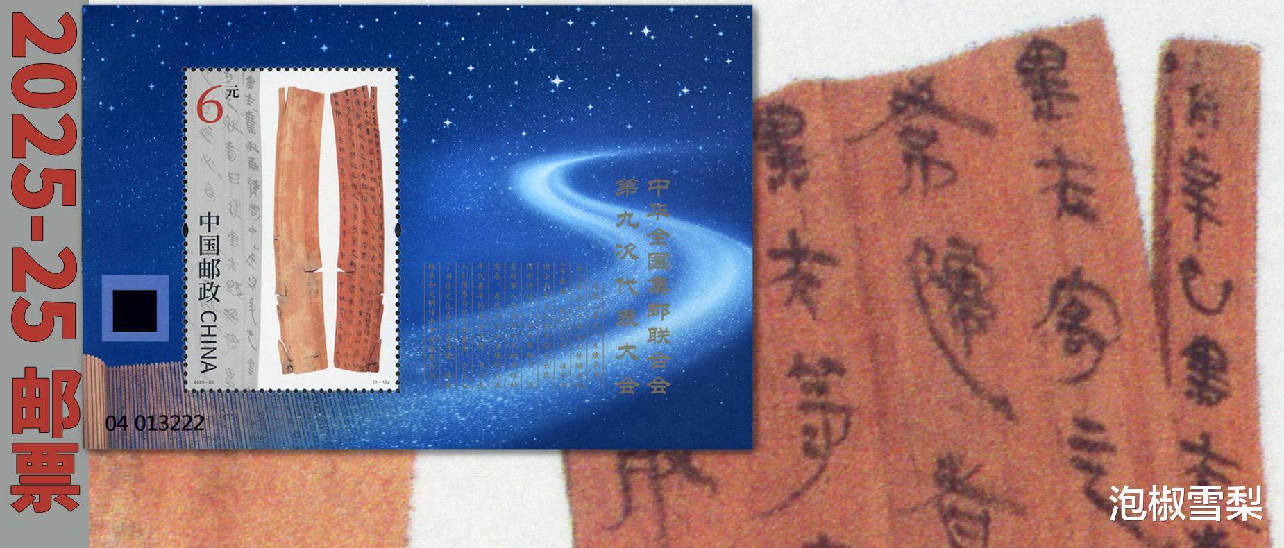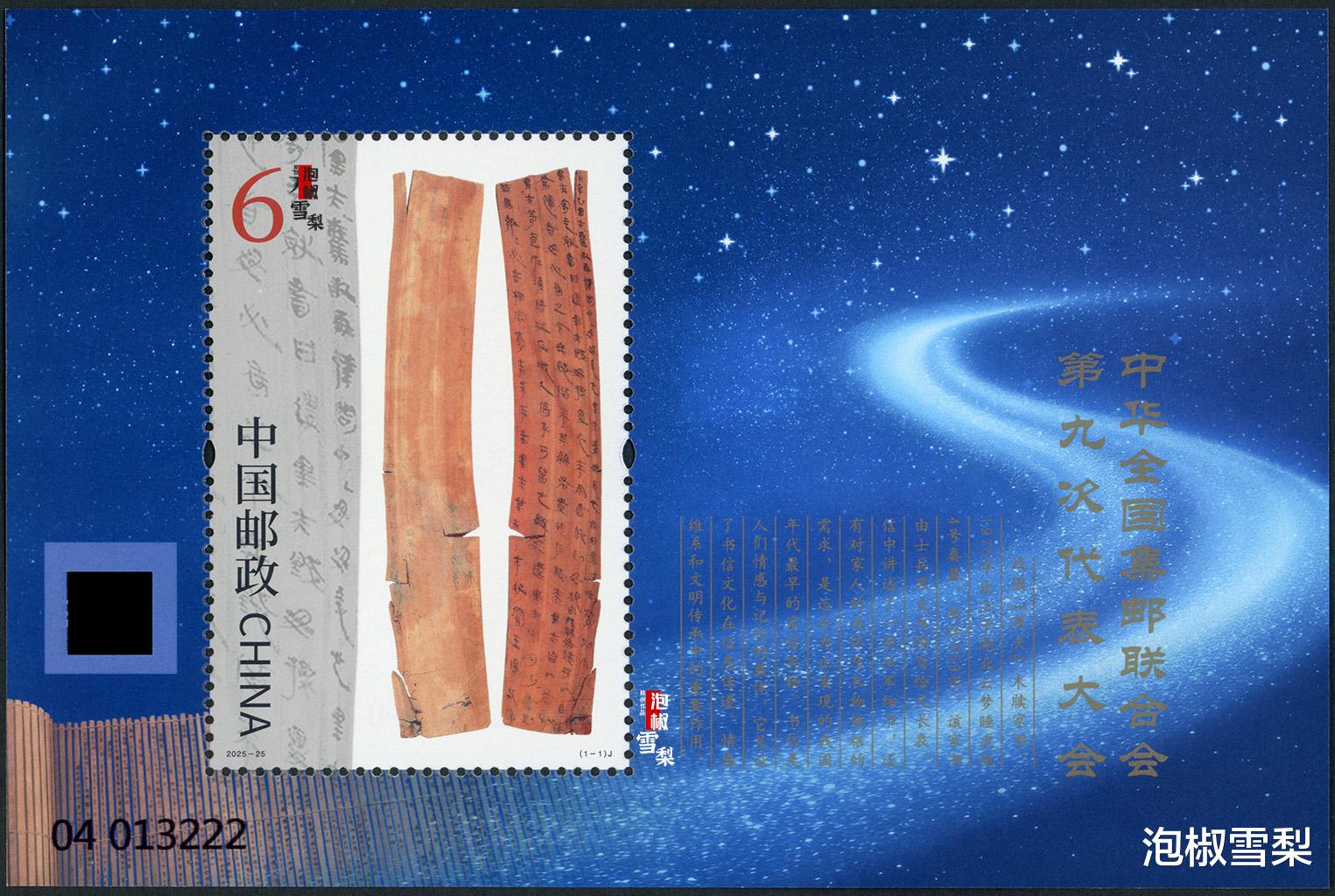 2025年11月13日,中国邮政发行《中华全国集邮联合会第九次代表大会》小型张邮票1套1枚,北京邮票厂胶版印刷,设计者董琪,计划发行量435万套,总面值2610万元。