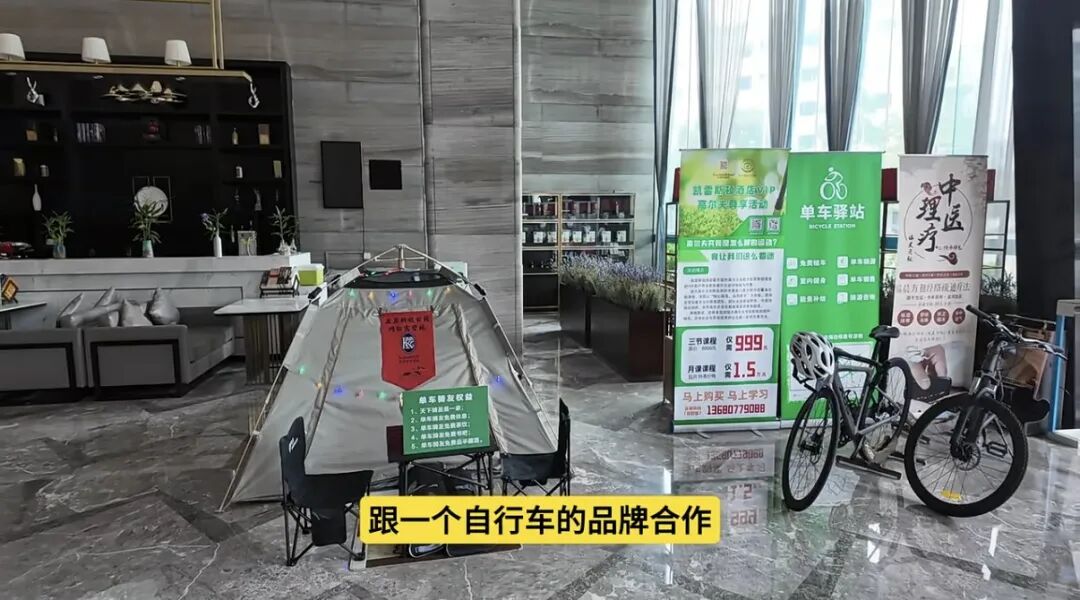 这让我想起前两年在行业里聊到的一个例子(对,不是新闻了,但越想越有意思)。深圳有家不算起眼的酒店,做了一件挺“出格”的事:它把大堂的一角,生生变成了一个自行车爱好者的据点。