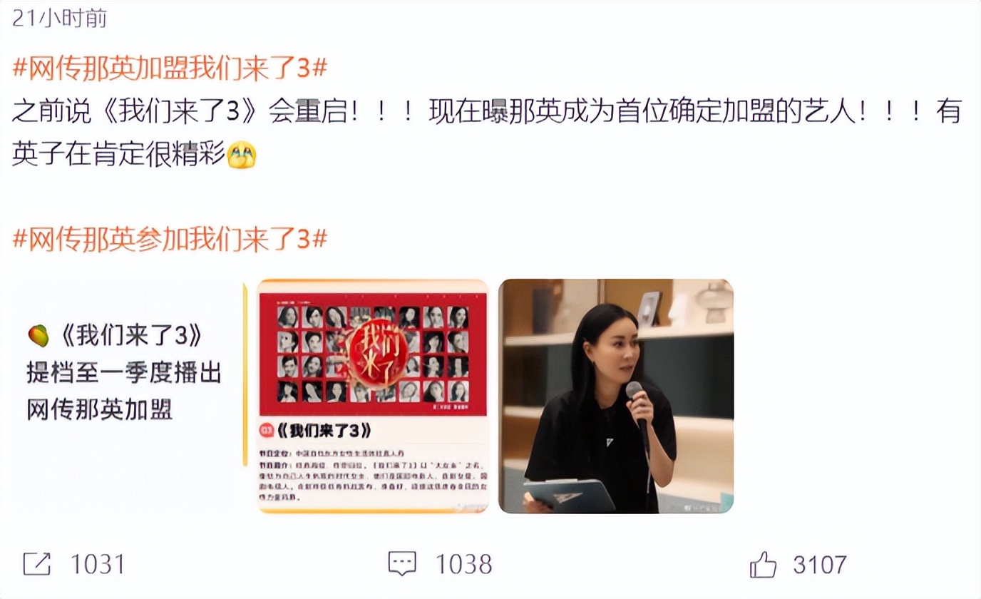 看到“网传那英加入偶像来了3”话题登上热搜后,网友们立即表示非常期待,因为有那英在,就算有姐姐想要作妖,也会被那英给怼回去,从网友们的反应上看,大家都希望那英加入,并开始期待。