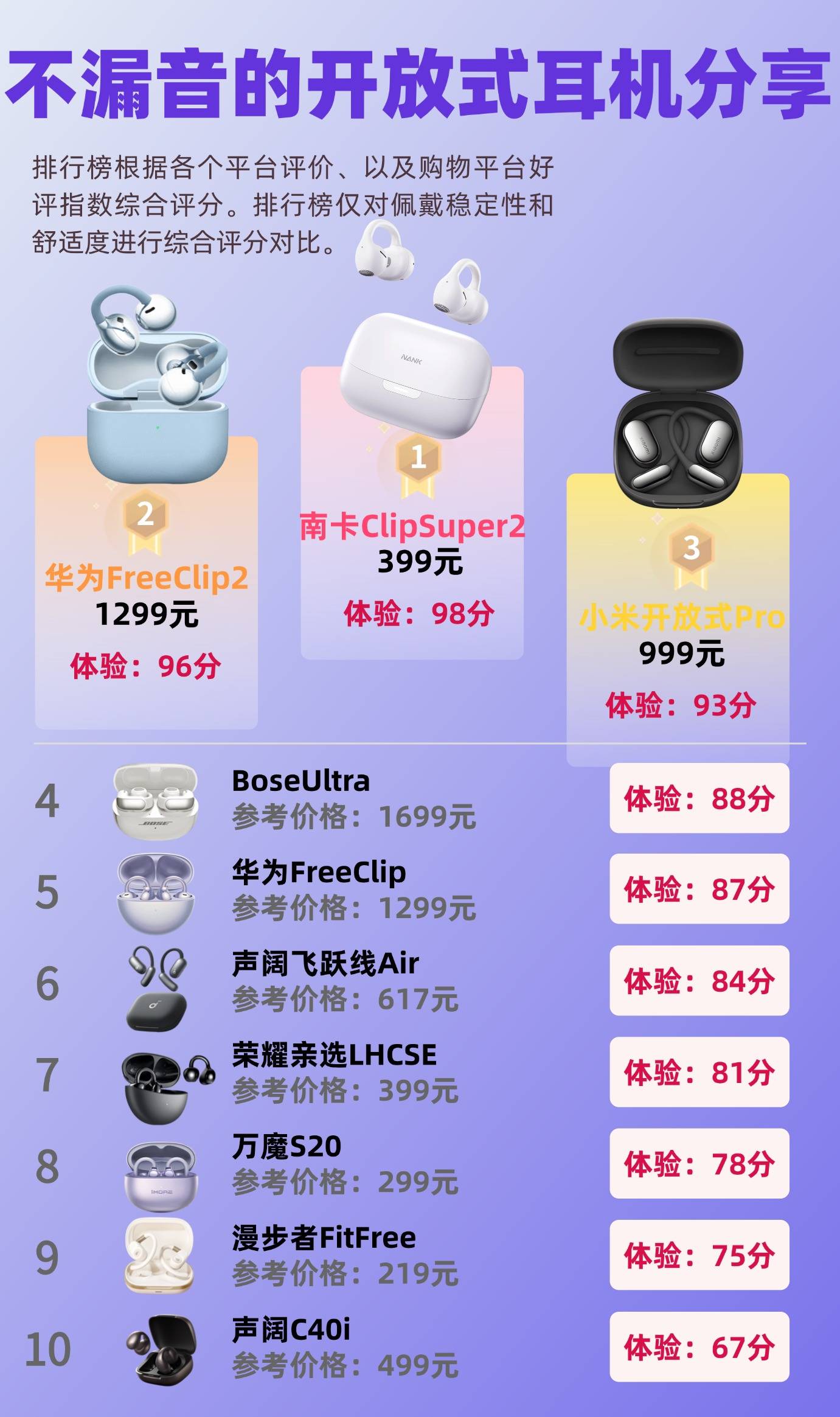想入手一副开放式耳机,却不知道什么牌子戴着最舒服?毕竟耳机天天要戴,要是戴久了耳朵硌、头痛或者夹耳,那再好听也白搭。开放