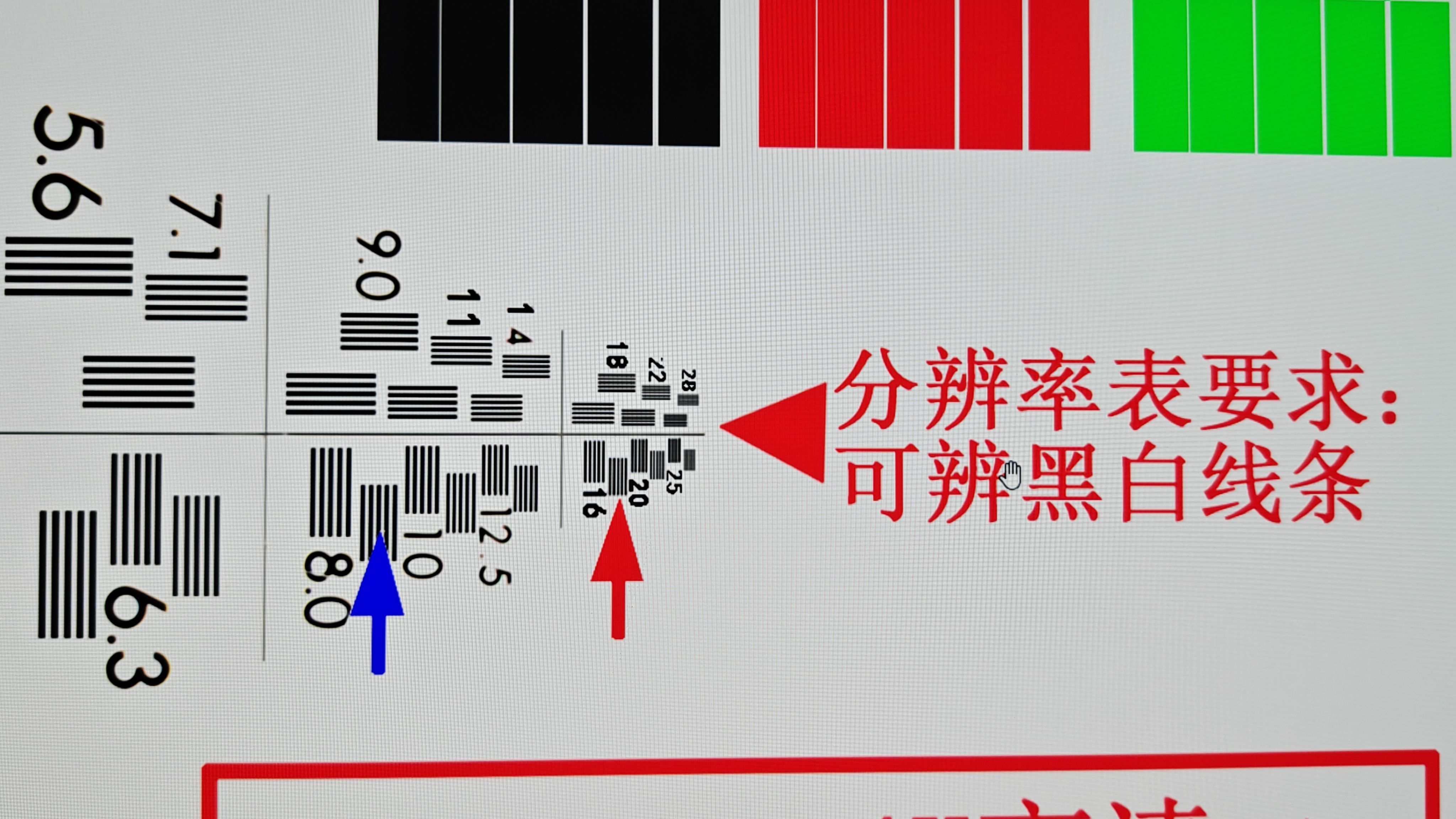 红色箭头指向的箭头也能清楚辨认边界,这块屏幕无疑能够达到4K分辨率。