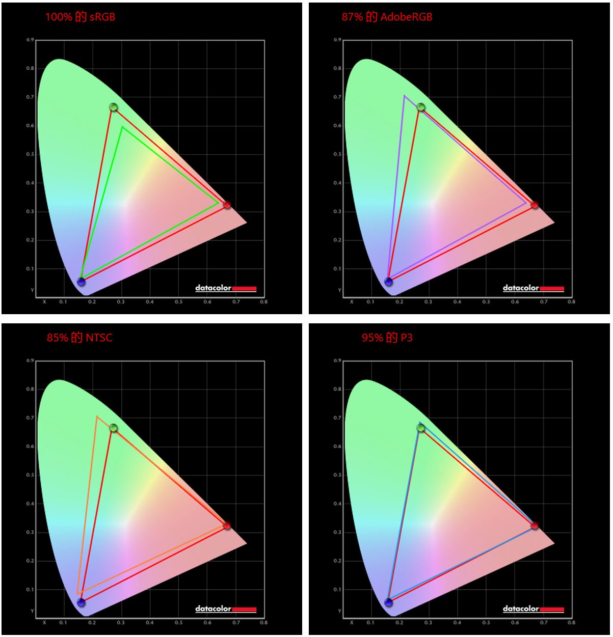 借助蓝蜘蛛SpyderXPro 对屏幕素质进行测定,从测试结果来看,这块屏幕支持100%sRGB、87%AdobeRGB、85%NTSC以及95% DCI-P3,色彩表现还是挺不错的。