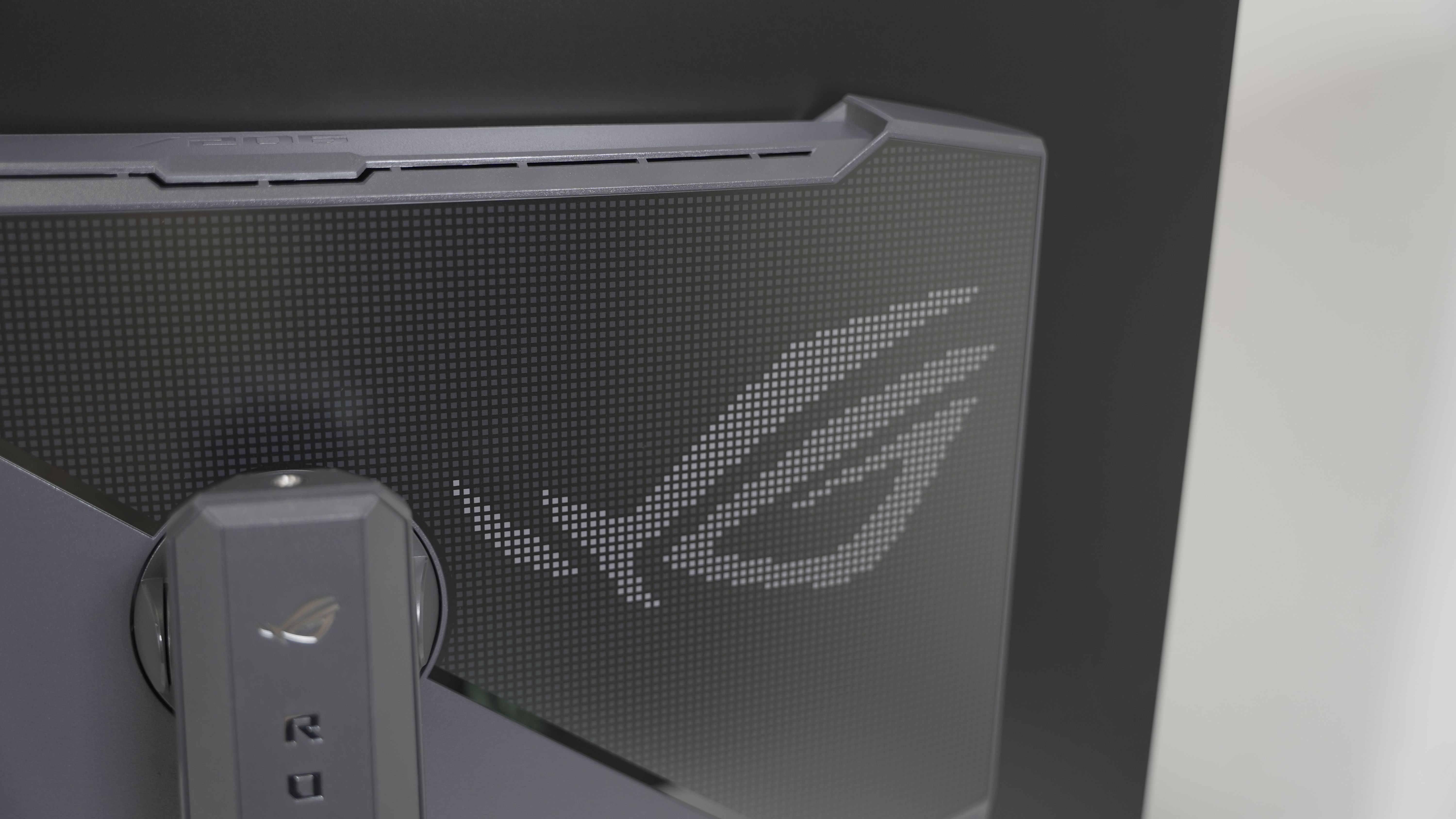 显示器背板上有像素元素组成的ROG小眼睛氛围灯。