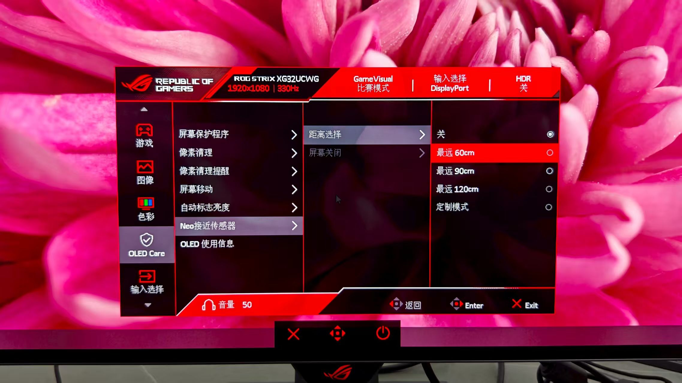当然,测试归测试,体验好才是真的好。屏幕内置了一些色彩调整、游戏辅助、刷新率调节等等功能。和其它显示器不一样的是,ROG绝神X双模OLED显示器为了延长显示器的寿命,它内置了一个Neo接近传感器,它能自动感知用户是否在显示器前,实现动态人机交互。