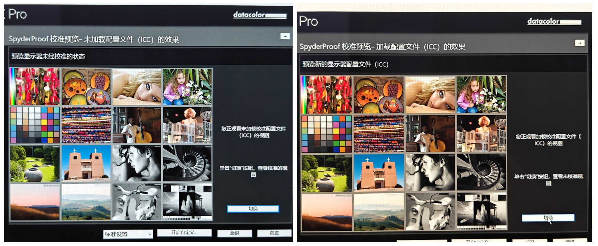 对比校色前后的色彩表现,可以看到ROG绝神X双模OLED显示器这块屏幕原厂调教偏冷,总体而言更加鲜艳,这种调教应该是针对电竞游戏而设计的,经过校色后屏幕颜色更暖一些。