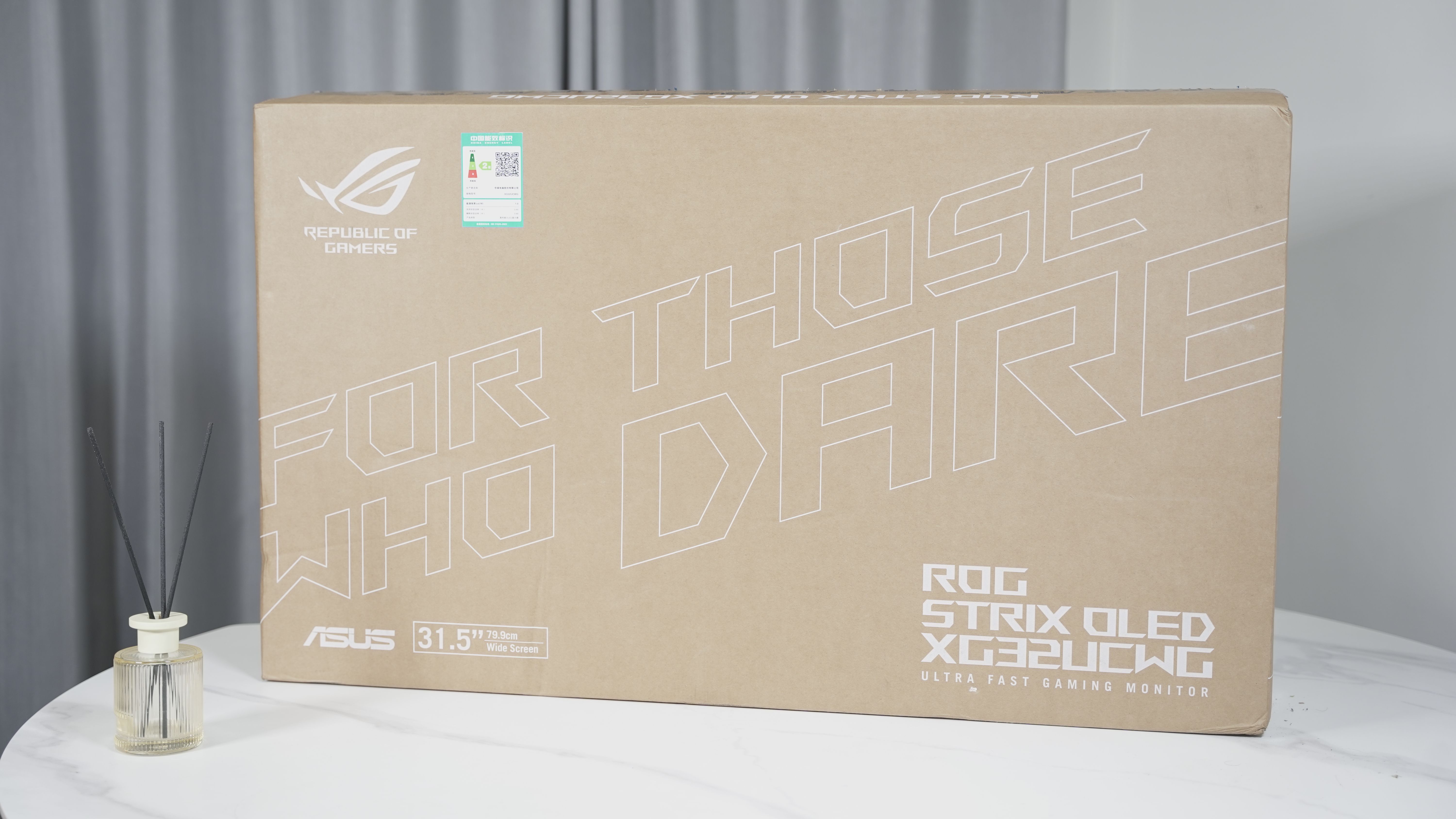 ROG绝神X 双模OLED显示器的包装简洁,不过这里得吐槽一下,这完全没有展示出ROG的“霸气”,毕竟剁手买ROG的小伙伴,都是对颜值有很高追求的。