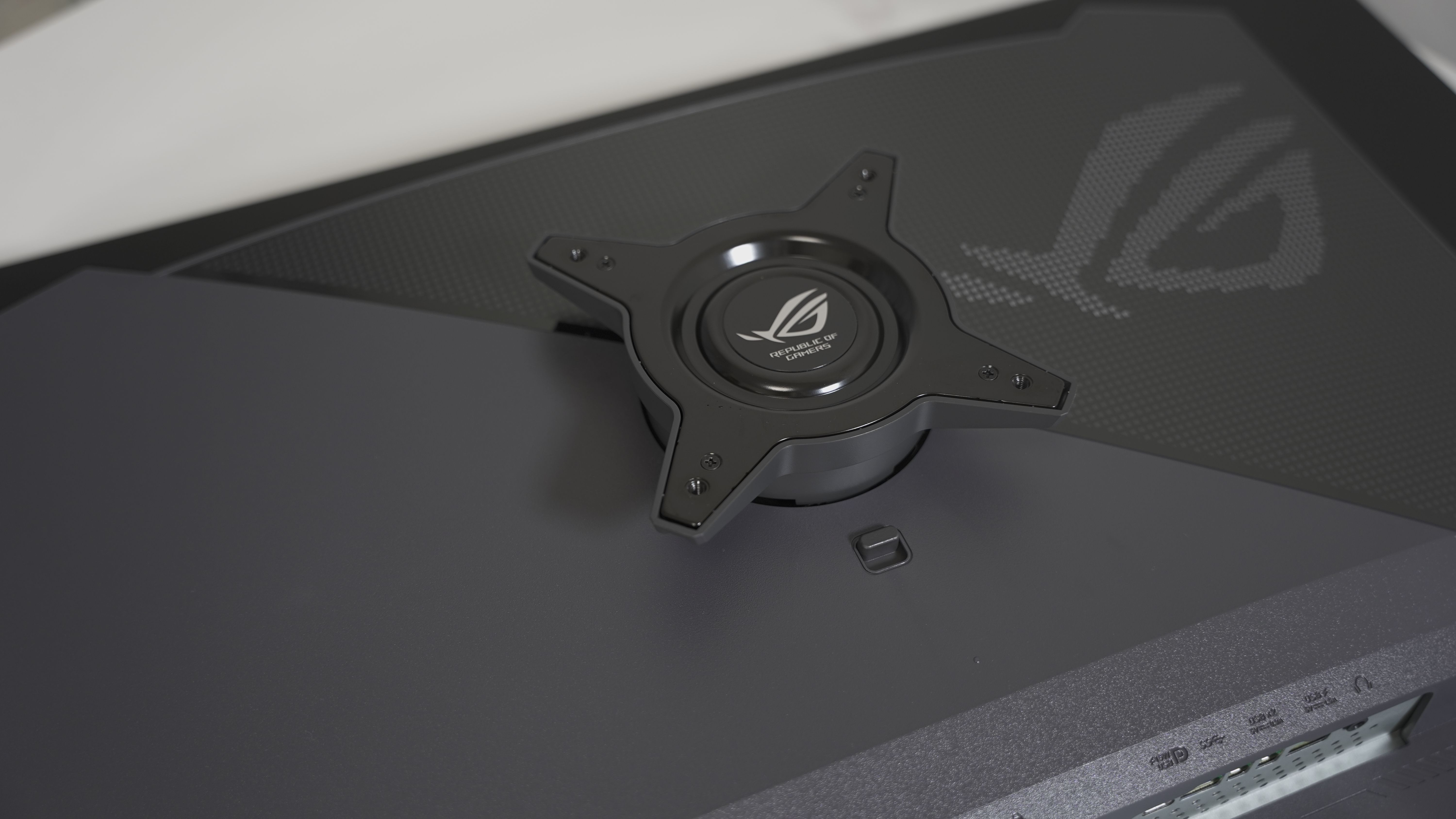 显示器支架保留了大量ROG元素,细节上非常到位。