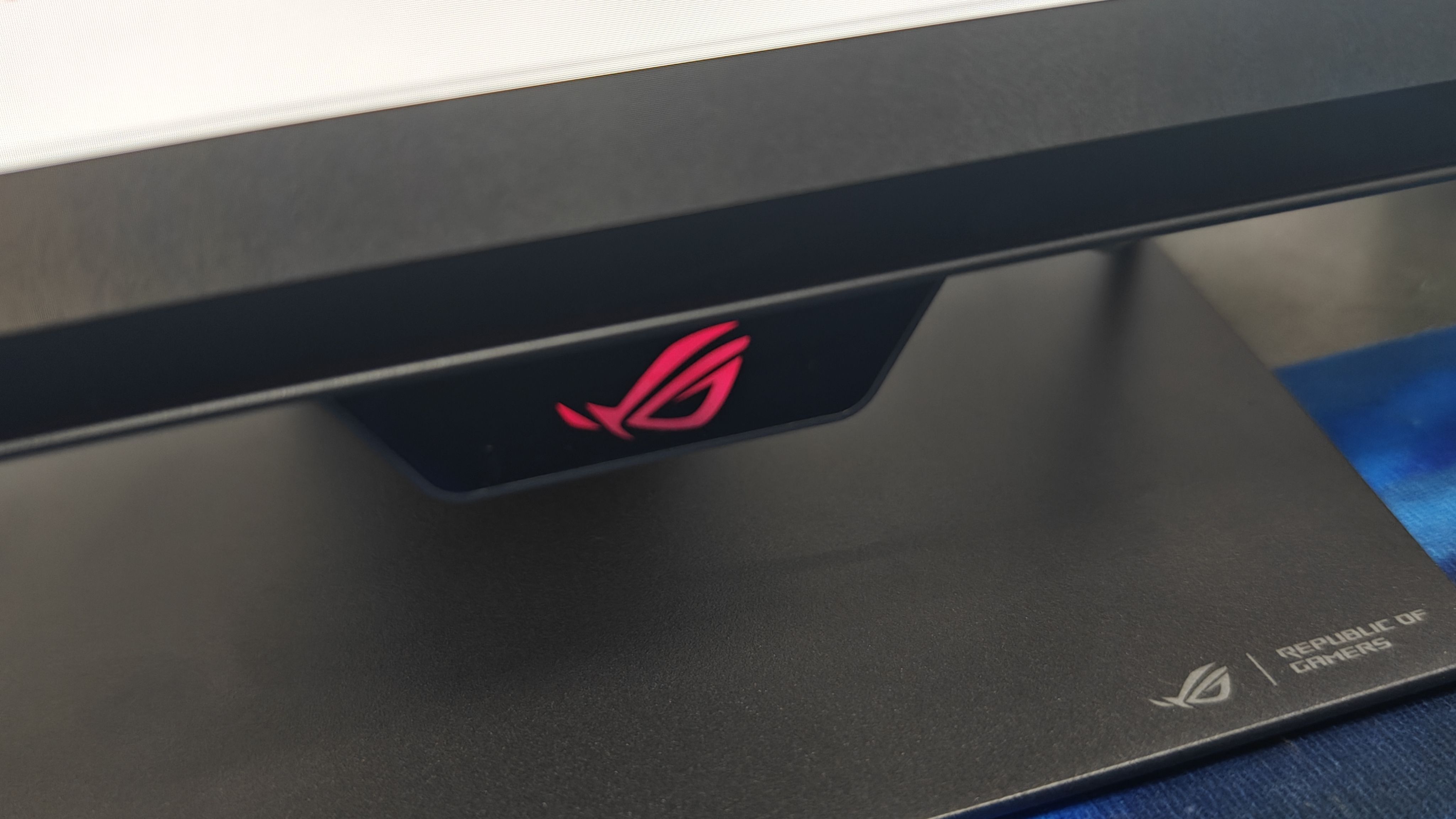 屏幕下方设计了一个ROG小眼睛的电源指示灯。