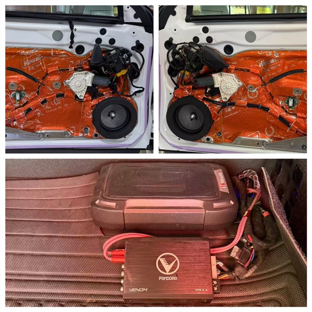在施工过程中,泉州海林的师傅展现了精湛的工艺水准。前后门板的安装还原工作尤为细致,严格按照原厂标准进行施工,升级后的门板外观与原车保持一致,完全看不出换装痕迹,既保证了音响效果,又不破坏车辆的原厂质感。