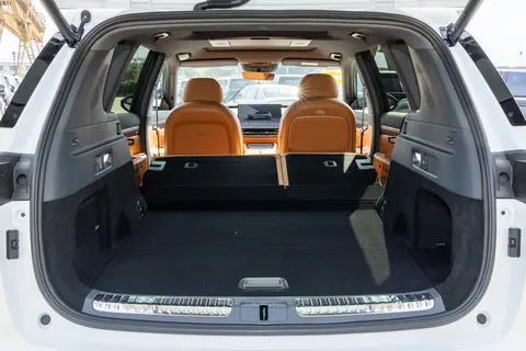 别克 E5 的尺寸是 4892×1905×1681mm,轴距 2954mm,空间表现也不差。后排腿部空间虽然比 eπ008 小一点,但也足够用,地板是纯平的,中间坐人不用岔开腿。它的后备箱容积是 502L,规整度很高,盖板下面还有小储物格,能放些零碎的工具、充电线之类的东西,放倒后排能扩展到 1658 升,日常家用也完全够用。不过相比 eπ008,它的储物灵活性差点,比如没有专门的儿童用品收纳区。