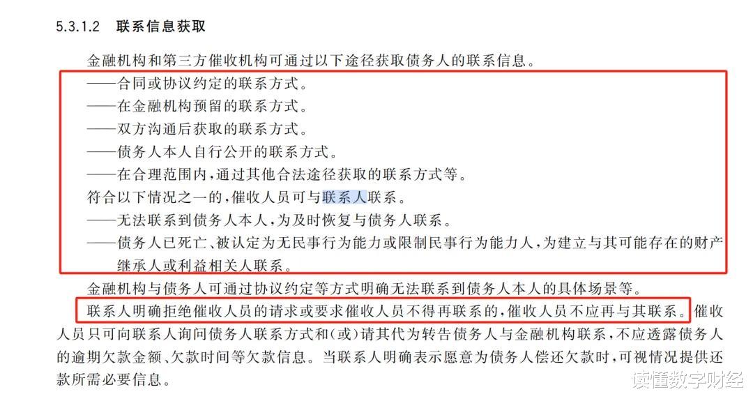 《催收指引》指出:“符合以下情况之一的 ,催收人员可与联系人联系。并要求“联系人明确拒绝催收人员的请求或要求催收人员不得再联系的,催收人员不应再与其联系 。