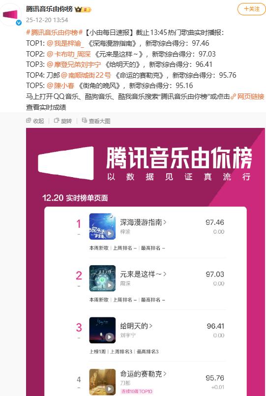 有意思的是,就在这个争议最激烈的时候,刀郎的新歌《命运的赛勒克》进入了热门歌曲榜前五。