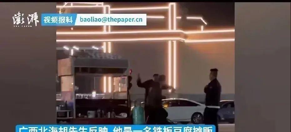 据报道,这起事件发生在广西北海市。据商贩老板胡先生的叙述,当时他在学校门口摆摊卖铁板豆腐。城市管理人员到来后,双方因为摆摊问题发生了争执,胡先生只好准备离开。