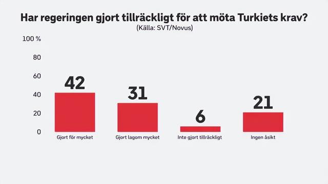 调查显示,42%的人认为政府为安抚土耳其做得太多了,认为做得还不够的人只有6% / SVT