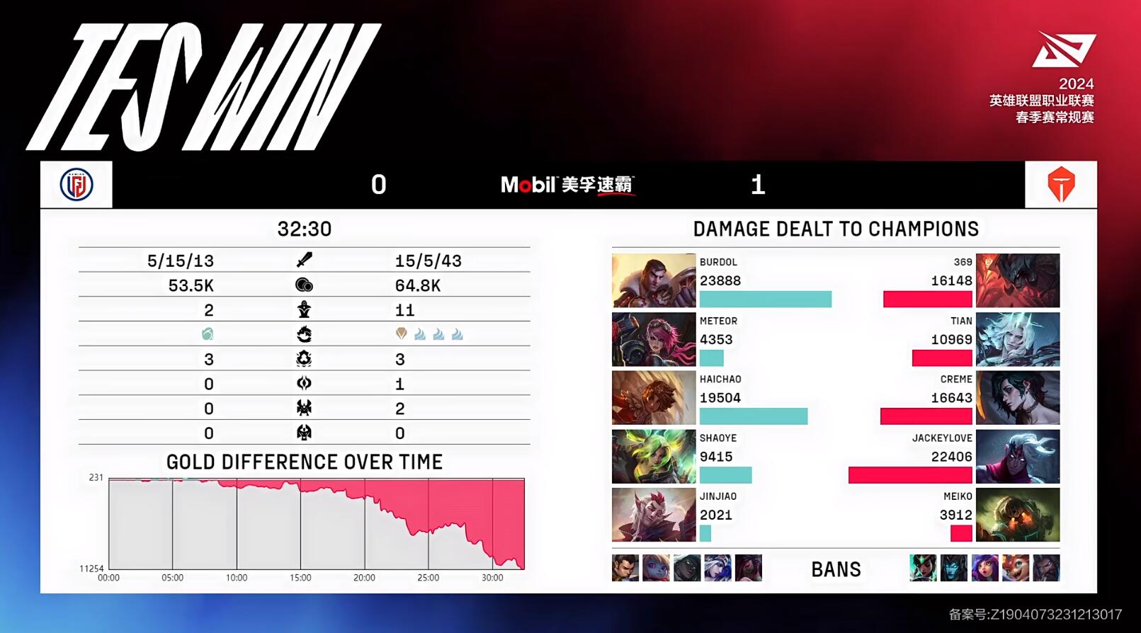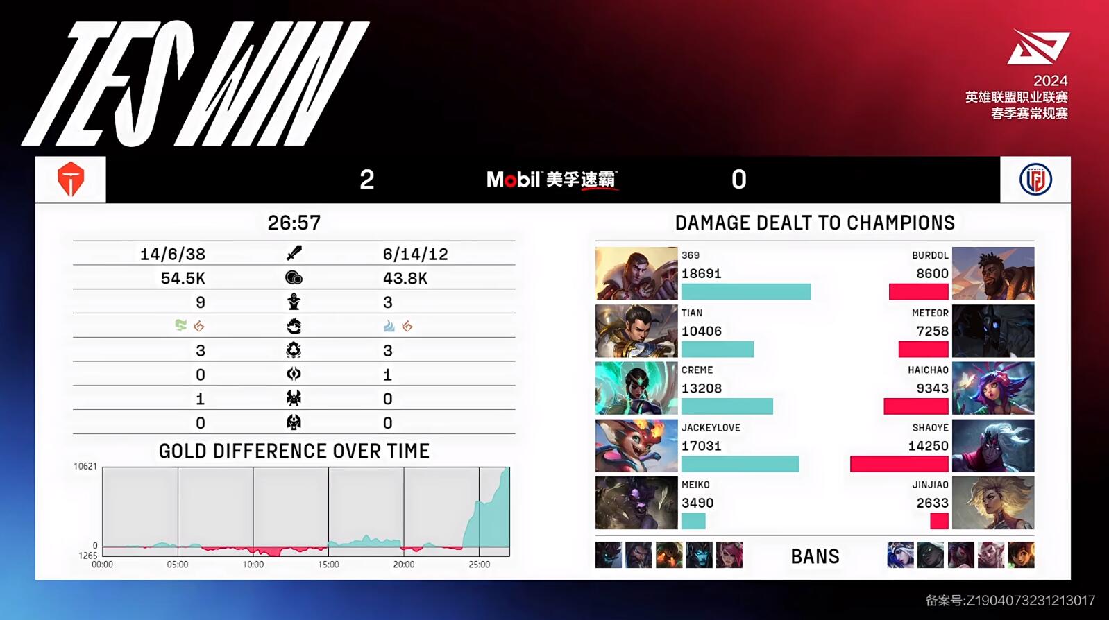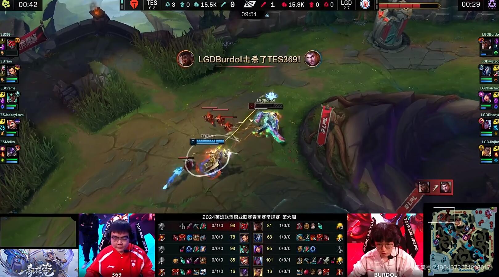 2024年3月4日,LPL春季赛第六周第一个比赛日,TES对阵LGD。