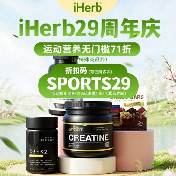此次iHerb29周年庆运动营养专场可谓诚意十足!9月23日凌晨1点前,输入折扣码“SPORTS29”,运动营养品类无门槛享71折(特殊商品除外)!