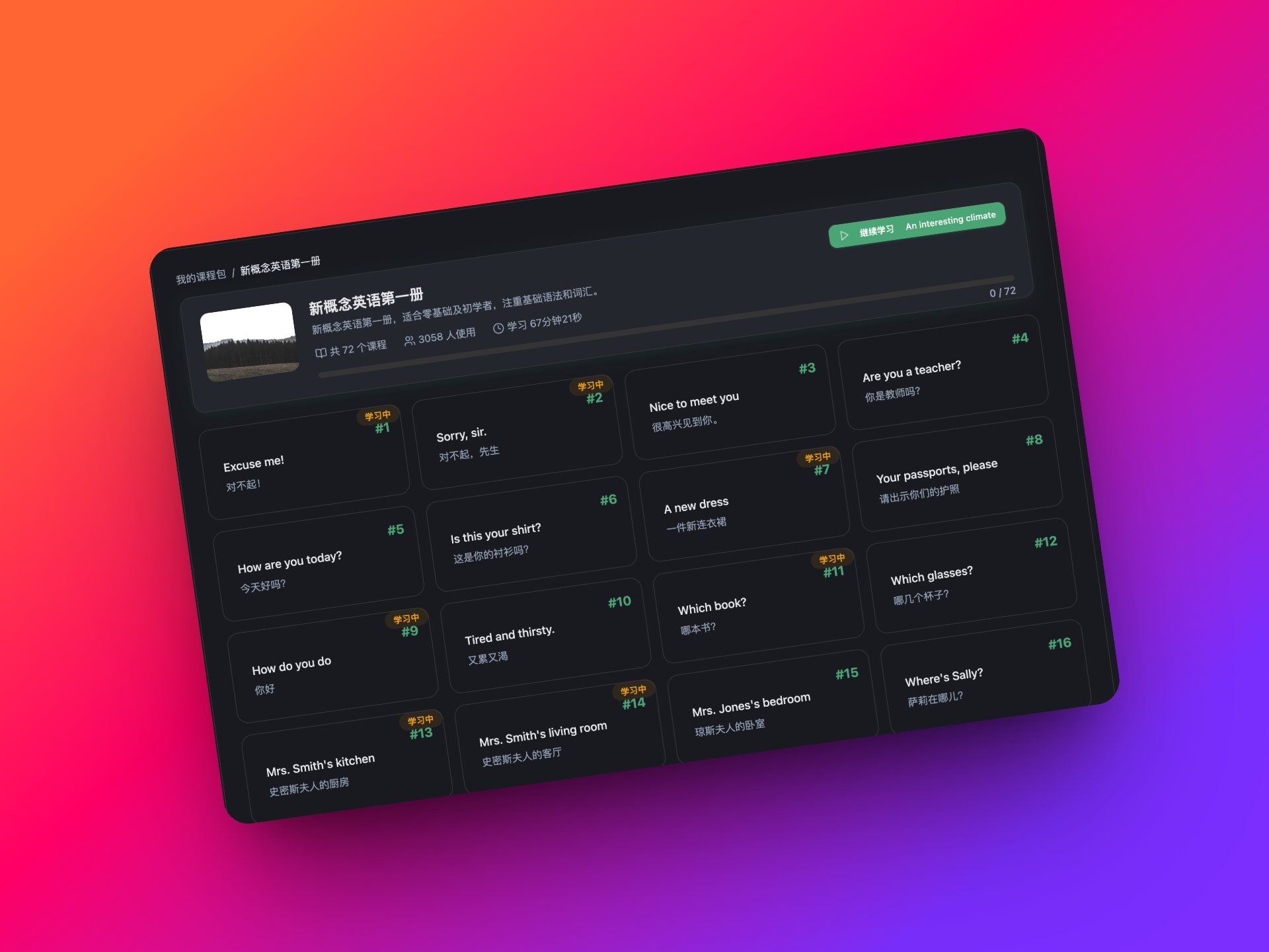 i+1 难度,让你“有点难,但能完成” 学习最怕的就是太难或太简单。“句会了”采用“i+1”难度递进原则,为你设置略高于当前水平的学习任务,既有挑战性,又能让你在“跳一跳”就能够到的成就感中持续进步。
