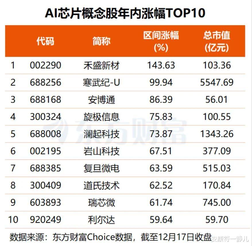 全球竞赛升温,A 股 1.9 万亿市值的 AI 芯片板块已率先反应:近九成个股年内上涨,禾盛新材涨幅达 143.63%,寒武纪翻倍,11 股涨幅超五成。更关键的是机构动向 —— 四季度以来 14 股获超 20 家机构调研,这 5 只标的值得重点关注: