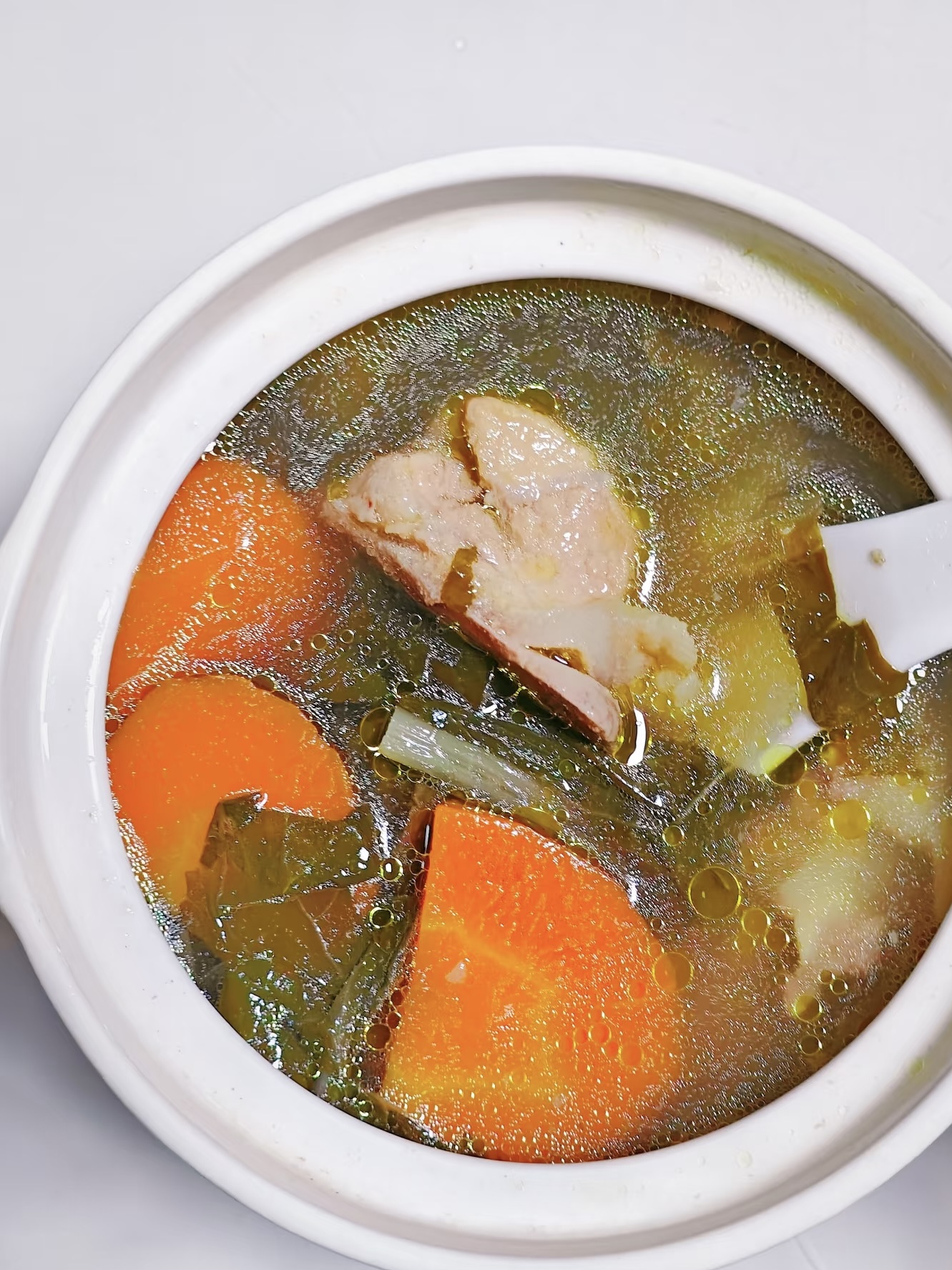 这汤最适合什么季节喝?答案是全年无休!春天湿气重,菜干能祛湿;夏天吹空调多,润喉润肺;秋冬干燥,更是滋阴润燥的佳品。而且做法简单到离谱,食材丢进锅里就不用管了,追剧、刷手机、陪娃写作业,完全不耽误。周末炖一锅,工作日带便当,或者晚上回家热一热就能喝,简直是打工人的续命神器。